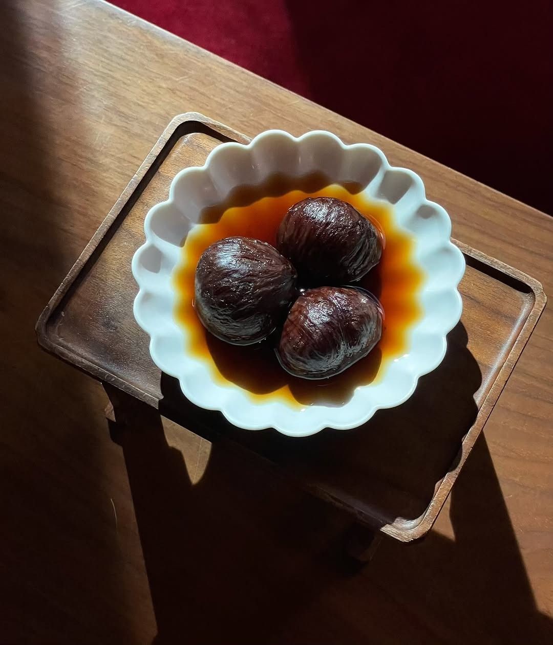 먹방 유튜버 '입짧은 햇님'이 극찬한 에그타르트 맛집, <소재>에서도 보늬밤을 활용한 이색 디저트를 만나볼 수 있어요. 부드러운 에그타르트에 보늬밤을 넣어 한층 촉촉하면서도 부드러운 식감을 완성했습니다.