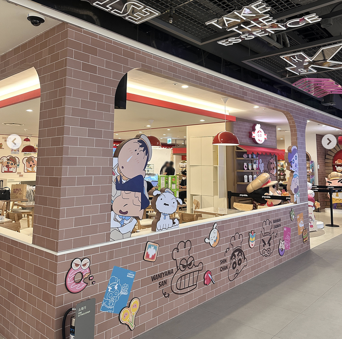 1992년부터 국내에서 방영을 시작해 34년 째 인기리에 방영을 이어가며 극장판만 32기까지 나온 초 인기 애니메이션 <짱구는 못말려> 또한 이번에 팝업을 엽니다. 무려 짱구가 베이커리 파티쉐가 되었다는 설졍이죠. 어마어마한 대기줄을 뚫고 입구에 들어서면 가장 먼저 햄버거를 손에 든 부리부리 대마왕이 보이고요. 각 캐릭터 모양 디저트 인형을 들고 사진을 찍을 수 있는 포토존을 지나면 베이커리 콘셉트의 다양한 짱구 굿즈들을 만나볼 수 있습니다. 가장 인기가 많은 굿즈는 식빵 모양의 짱구 쿠션인데, 촉감이 보들보들해서 사무실에 놓기 딱 좋다고 하네요. 이곳의 시그니처 메뉴는 ‘짱구 크림 엉푸치노’와 ‘부리부리 아인슈페너’입니다. 애니메이션 만큼이나 아기자기한 색감의 음료들이 입은 물론 눈도 즐겁게 해주고요. 짱구 엉덩이를 닮은 ‘짱구 바스크 치즈 케이크’와 부리부리 대마왕 얼굴로 번을 만든 ‘부리부리 샌드위치’도 사진 찍기 딱 좋습니다. 커피 메뉴를 주문하면 랜덤으로 짱구, 흰둥이 쿠키를 증정한다고 하네요. 짱구 팬들은 아까워서 못 먹을 것 같은데요?