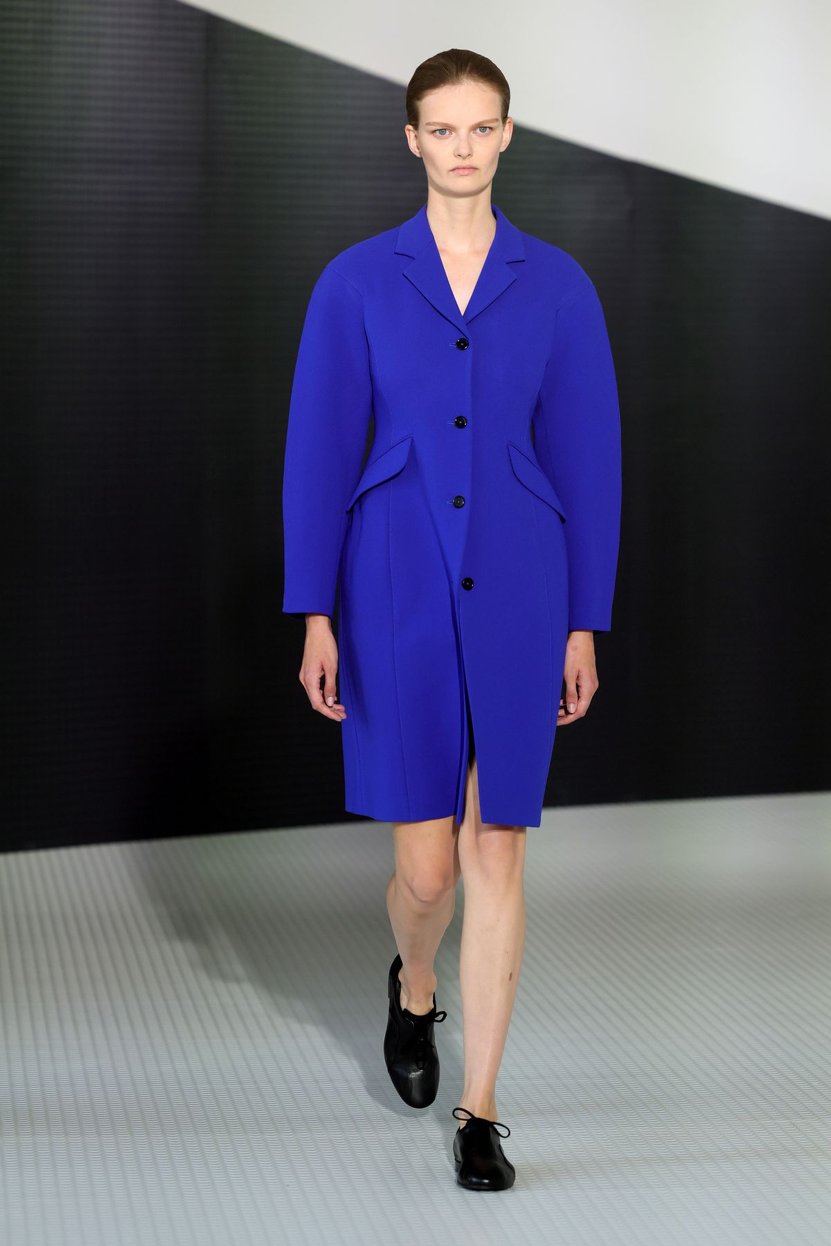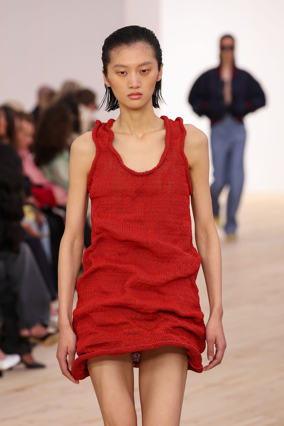 발리 출신의 크리에이티브 디렉터 시몬 벨로티의 블루는 차갑고도 강렬합니다. 질 샌더 아카이브 특유의 미니멀리즘과 구조적인 실루엣을 구현했어요. 가벼운 구조라는 테마답게 군더더기 없는 깔끔한 테일러링, 색다른 노출 슬릿 디자인 등 차분하면서도 오묘한 실루엣들이 쇼에 활력을 불어넣었습니다.
