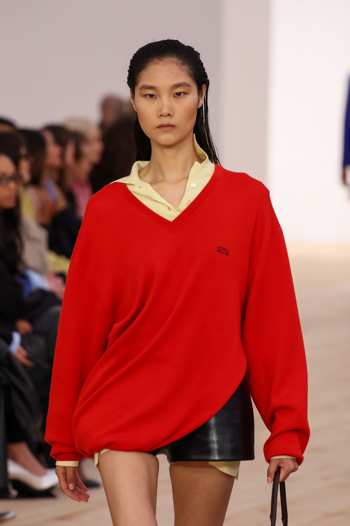 새롭게 크리에이티브 디렉터로 온 잭 맥콜로와 라자로 에르난데스의 첫 번째 로에베 컬렉션에는 맛있게 익은 토마토 레드 컬러가 담겨있습니다. 프로엔자 스쿨러에서도 자주 보인 특유의 스포티한 무드의 스타일링과 강렬한 컬러매치업, 최고급 가죽을 완벽하게 재단한 장인의 테일러링 정신까지. 패션 위크에서 쌓인 잔뼈 굵은 경험치들과 179년 역사의 브랜드 헤리티지까지 더한 활기 넘치는 런웨이를 완성했어요.