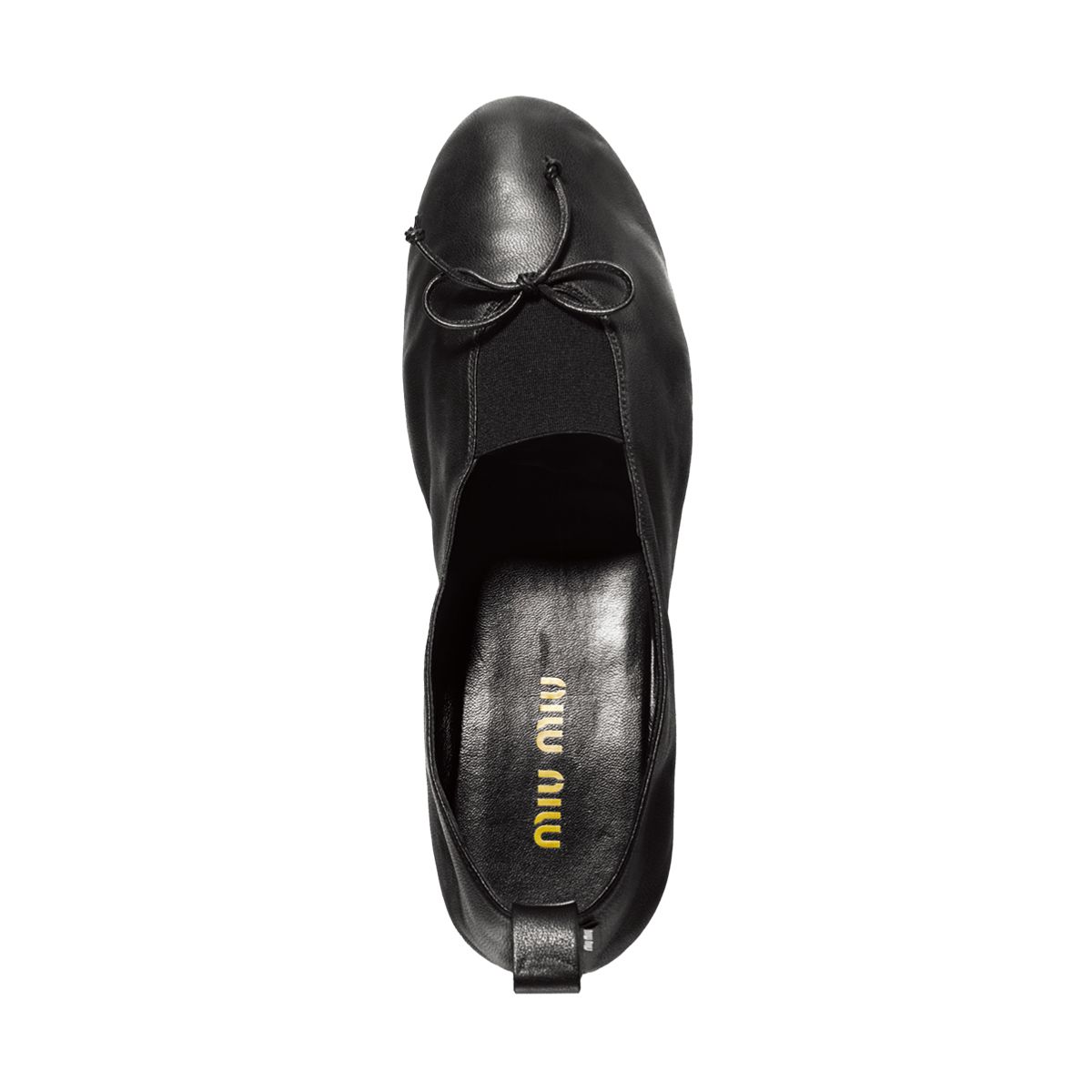 보 디테일의 플랫 슈즈는 가격 미정, Miu Miu.