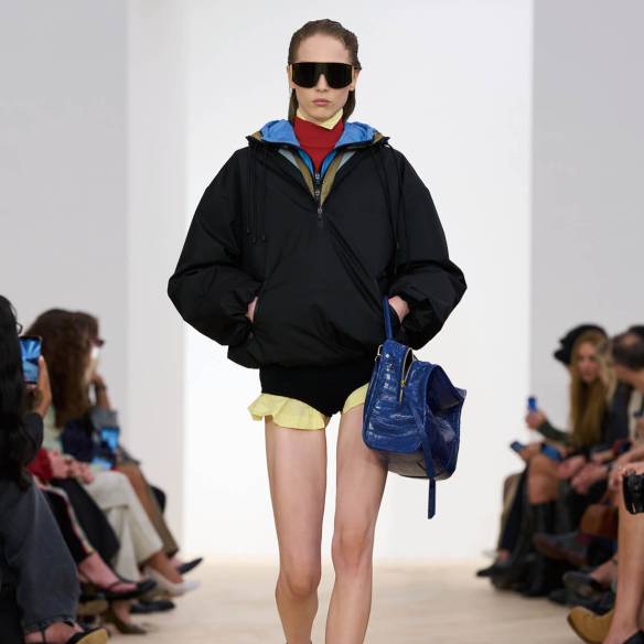 오버사이즈 블랙 재킷 아래 예상치 못한 언더웨어 매치를 보여준 카일리 제너. 볼륨감 있는 웨이브 헤어와 빈티지 안경, 깅엄 마이크로 미니스커트까지 우아하고 사랑스러운 핀업걸 룩을 연출했습니다.
