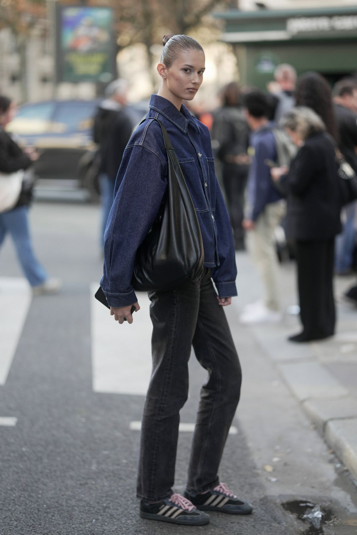 이번 시즌엔 데님에 데님을 매치하는 게 핵심입니다. 단, 상하의를 똑같은 워싱으로 맞추는 방식은 옛말이죠. 블랙 시가렛 진에 밝은 톤의 데님 재킷을 매치하면, 서로 다른 워싱이 만들어내는 미묘한 톤 차이가 룩에 깊이감을 줍니다. 이 조합은 그야말로 미니멀리즘의 정수라고 할 수 있죠. 여기에 블랙 벨트와 스틸 토 로퍼 등 동일한 색의 액세서리를 매치하면 전체적인 룩이 한층 세련되게 정돈됩니다. 블랙과 블루의 대비가 선사하는 강약 조절이 도시적인 감각을 더해주니 오피스부터 주말 브런치 자리까지, 어디든 잘 어울리는 만능 스타일이 완성되죠.