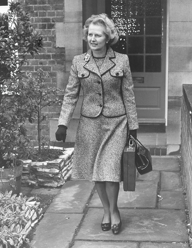1979년 영국 최초의 여성 총리 자리에 올라 세 번을 재임한 마거릿 대처는 정치인의 수많은 덕목 중에 패션도 포함된다고 생각했다. 특히 언제 어디서나 갖고 다니는 블랙 컬러의 라우너(Launer) 핸드백은 대처의 카리스마를 발산하는 데 큰 역할을 했다. 핸드백 속에는 그녀가 좋아하는 책이나 스크랩 자료들이 가득했으며, ‘자기 주장을 강하게 내세운다’는 뜻의 핸드배깅(handbagging)이라는 신조어까지 탄생시켰다. 2013년 마거릿 대처의 서거 소식 이후 라우너 핸드백의 매출이 53% 올랐다는 뉴스를 통해 대처의 패션 영향력을 실감할 수 있다.