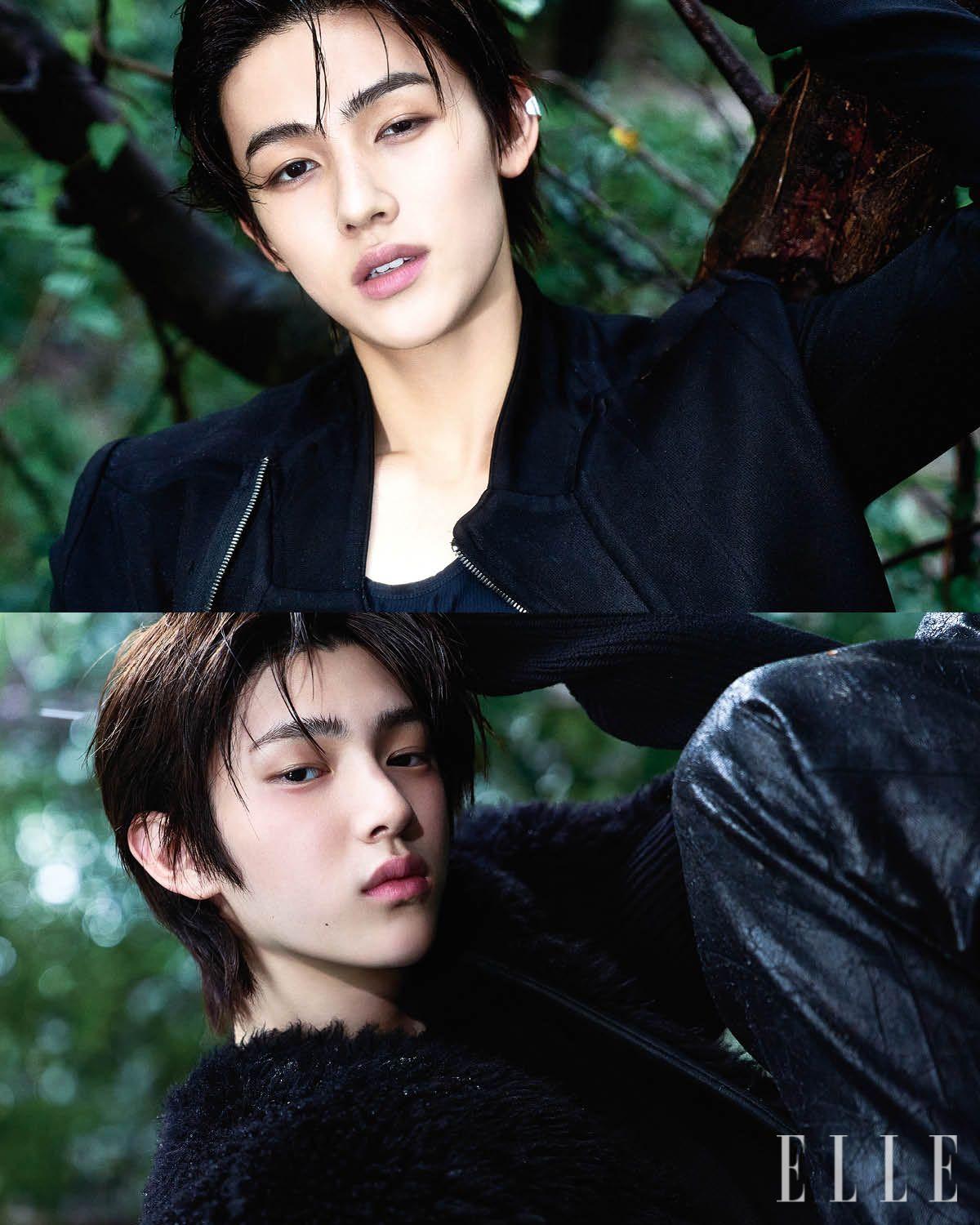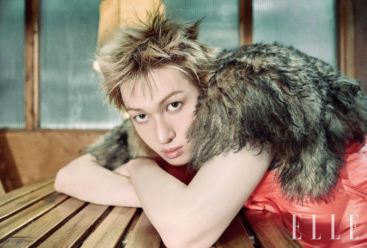 성현이 입은 아우터웨어는 Julius. 이너웨어 톱은 Didier wear. 이어 커프는 스타일리스트 소장품. 주훈이 입은 시어링 아우터웨어는 Rick Owens. 이너 웨어로 입은 티셔츠는 Eckhaus Latta.