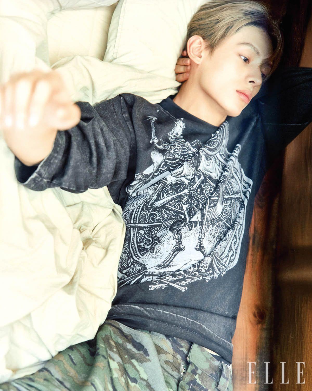 프린팅 톱은 Sankuanz by Adekuver. 이어커프는 스타일리스트 소장품.