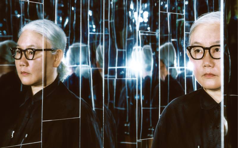 촬영을 위해 이불은 거울과 조명이 어우러진 미로 설치미술 작품 ‘비아 네가티바’(2022, 2012년 작 재제작) 내부에서도 포즈를 취했다. 수많은 거울에 비친 자신을 보면서 작가는 어떤 생각에 잠겼을까? 그는 담담하게 말했다. “우리는 누구나 거울에 비친 모습이 허상이라는 걸 알아요. 거울이 사용된 작품에서는 의도적으로 각도를 여러 개 만들어 왜곡을 심하게 해요. 깨진 거울을 통한 디스토션은 우리가 세상을 인식하는 방식에 대한 질문입니다. ‘비아 네가티바’의 미로 속에서 벌어지는 모든 리플렉션은 사실 그 앞에 서 있는 나 자신이죠. 우리가 세상을 인식하는 과정은 파편화된 이미지를 모아 다시 재조립하는 것과 같으니까요. 사실 자아라는 개념은 근대에 만들어졌는데, 만들어진 순간부터 우리 사고 체계와 분리할 수 없는 부분이 됐어요. 그 자아라는 갑옷이 산산이 부서지는 순간을 맞이하는 것, 그것이 바로 이 작품을 통해 꿈꾸는 바입니다.”