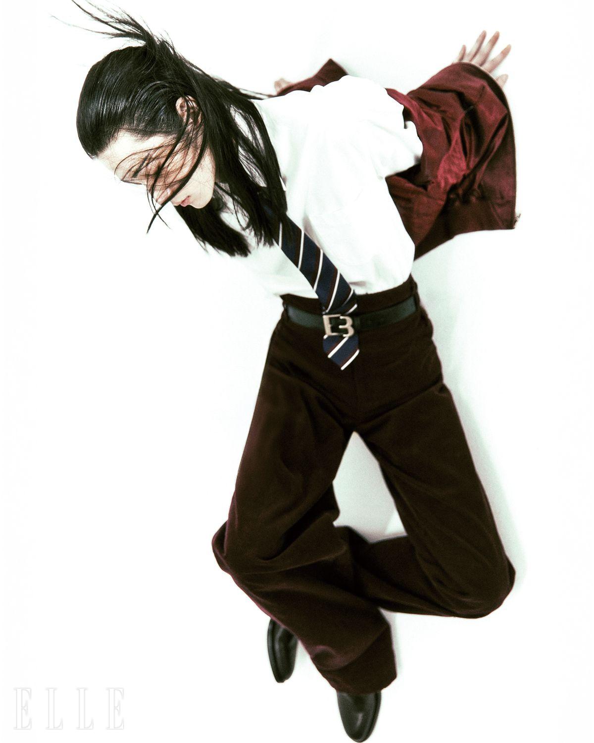 재킷은 1백6만3천원대, 코듀로이 팬츠는 78만7천원대, 벨트는 가격 미정, 모두 Bonbom. 로퍼는 가격 미정, Ferragamo. 셔츠와 타이는 모두 에디터 소장품.