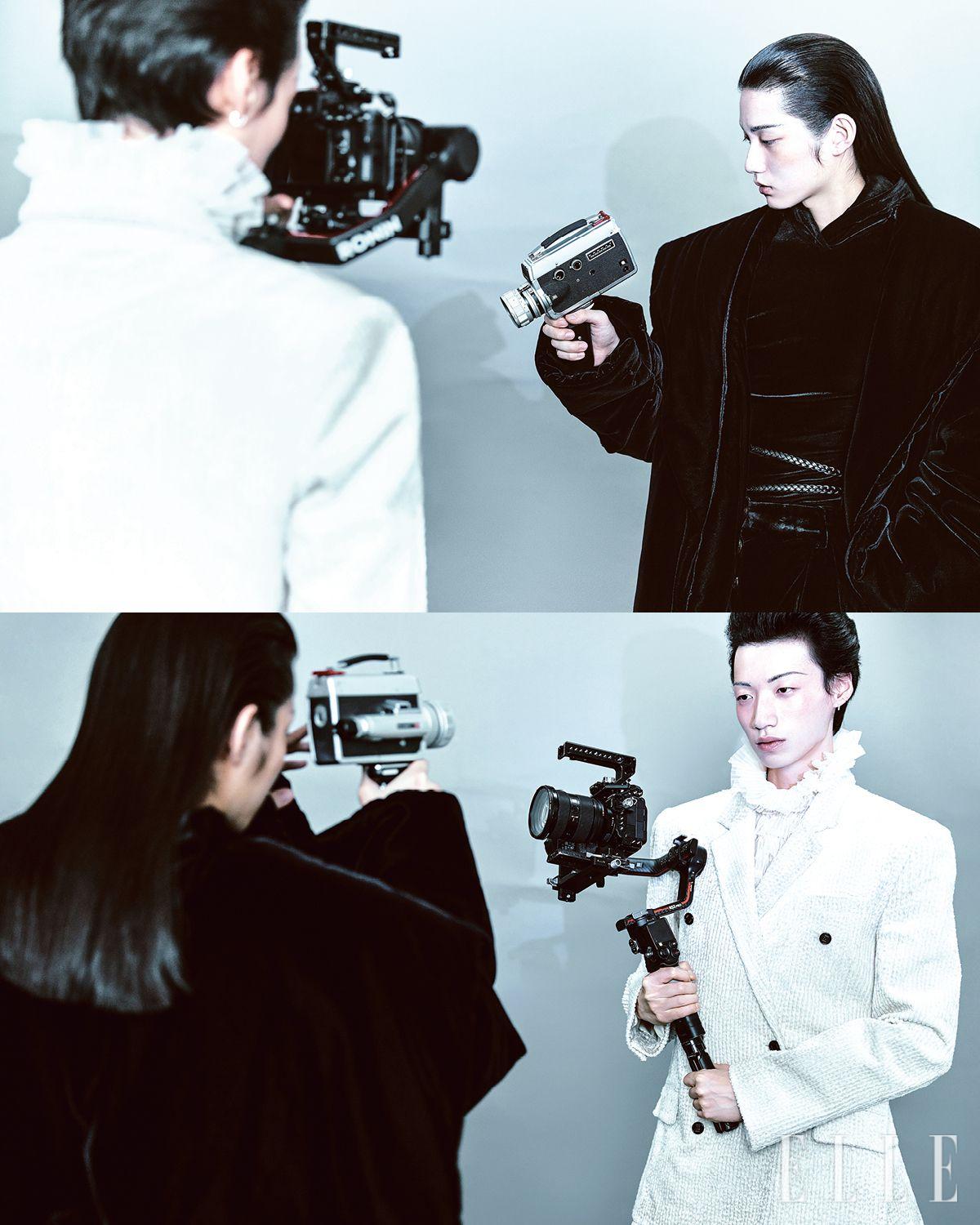 승민이 입은 코듀로이 더블 브레스티드 블레이저는 79만8천원, 팬츠는 가격 미정, 모두 Eenk. 프릴 셔츠는 1백88만원, Andy & Debb. 정연이 입은 블랙 푸퍼 재킷은 가격 미정, 벨벳 후디드 톱은 21만8천원, 벨벳 하이웨이스트 팬츠는 79만8천원, 모두 Eenk.