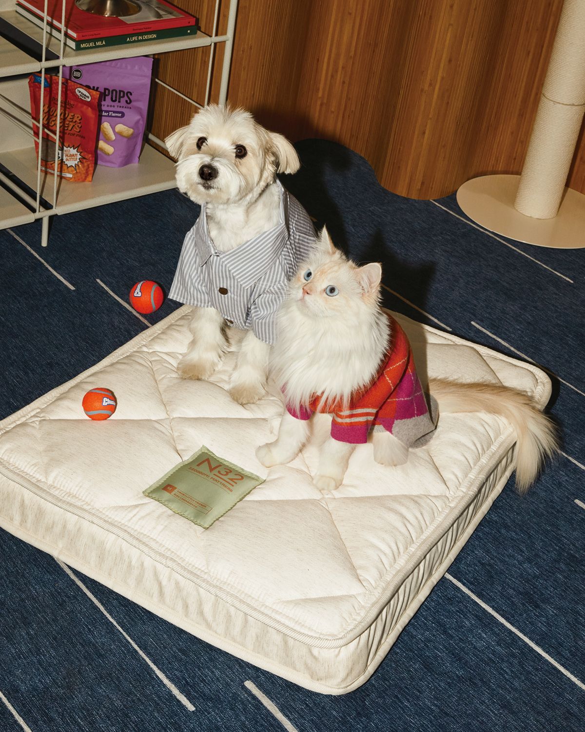 」이름부터 앙증맞은 ‘N32 쪼꼬미’는 반려동물을 위한 펫 매트리스. 아이슬란드에서 온 N32는 동물성 소재를 사용하지 않는 비건 매트리스 브랜드로 ‘쪼꼬미’도 그렇게 만들어졌다. 유기농 해조류를 원료로 한 비건 원단과 천연 식물성 리넨이 소재로 쓰이기도 했다. 브랜드 철학을 담은 소재 선정은 국내 펫 매트리스 최초의 ‘펫 3대 안심인증’ 획득으로 이어졌다. 동물도, 사람도 안심하고 사용 가능한 데다 안락함마저 선사한다. 반려동물에게 부담 없는 높이의 11cm 매트리스는 7단 레이어드 기술로 구성됐다. 세븐틴 승관과 그의 반려견 부끄의 화보에서도 맹활약했다.
