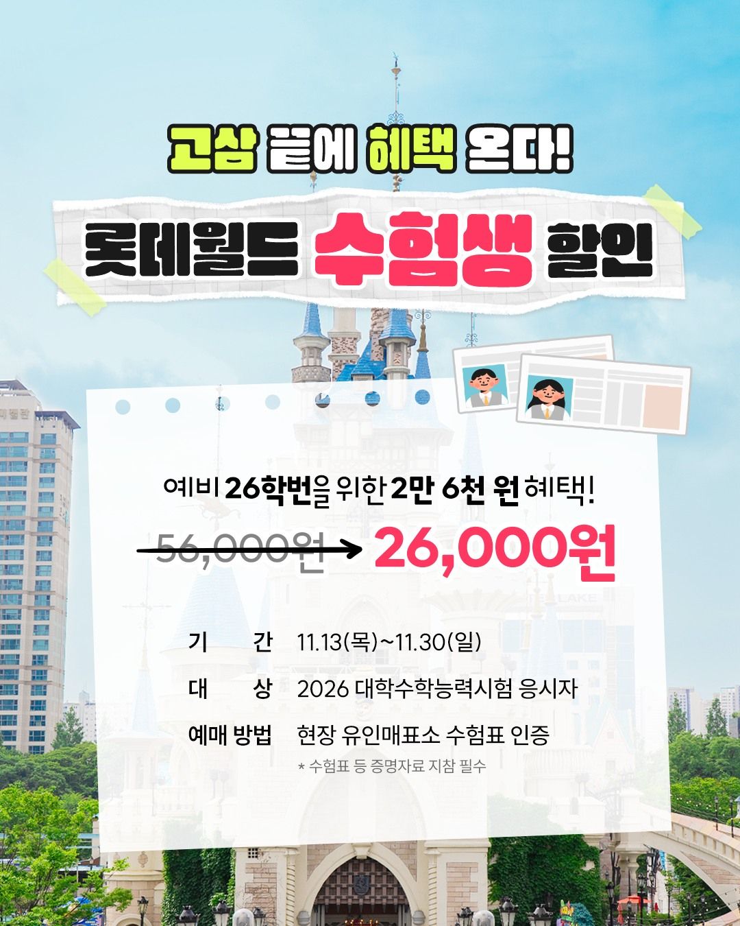 테마파크부터 뷰티·패션 업계 프로모션까지, 수험생 혜택들을 확인해 보세요.