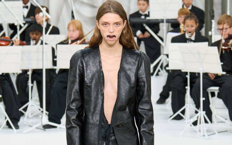 레더 자켓의 상징성은 스크린을 넘어 2026 S/S 컬렉션의 핵심 코드로도 확산 중입니다. 발렌시아가에서는 피에르파올로 피촐리가 하우스 고유의 실루엣을 재해석해 케이프 보머 자켓이라는 신선한 형태를 만들어냈습니다. 로에베에서는 잭 맥컬로와 라자로 에르난데스가 스페인적 헤리티지를 기반으로 스쿠버에서 영감을 얻은 칼라리스 레더 블레이저를 선보였고요. 보테가 베네타에서 루이즈 트로터는 트렌치 디테일을 교차해 넣은 셔켓과 레더가 위빙처럼 보이도록 설계된 래티스 칼라 보머를 선보이며, 레더 자켓의 아카이브적인 아름다움을 현대적으로 풀어냈습니다. 베르사체의 다리오 비탈레는 1090년대 지아니 베르사체의 유산을 힘 있는 숄더, 지퍼 디테일, 기하학적 패치워크로 재해석하며 레더의 강인함을 무대 위로 다시 끌어올렸죠.