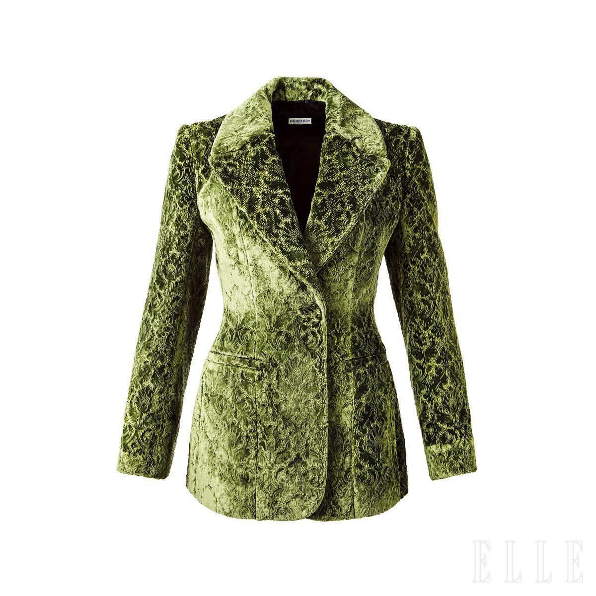 로코코 스타 일의 벽지가 연상되는 벨벳 블레이저는 4백35만원, Burberry.