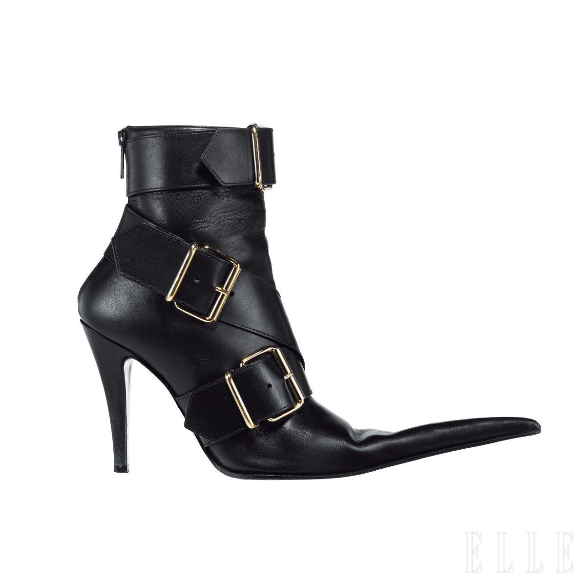 날렵한 포인티드 토 실루엣의 버클 부츠는 가격 미정, McQueen.