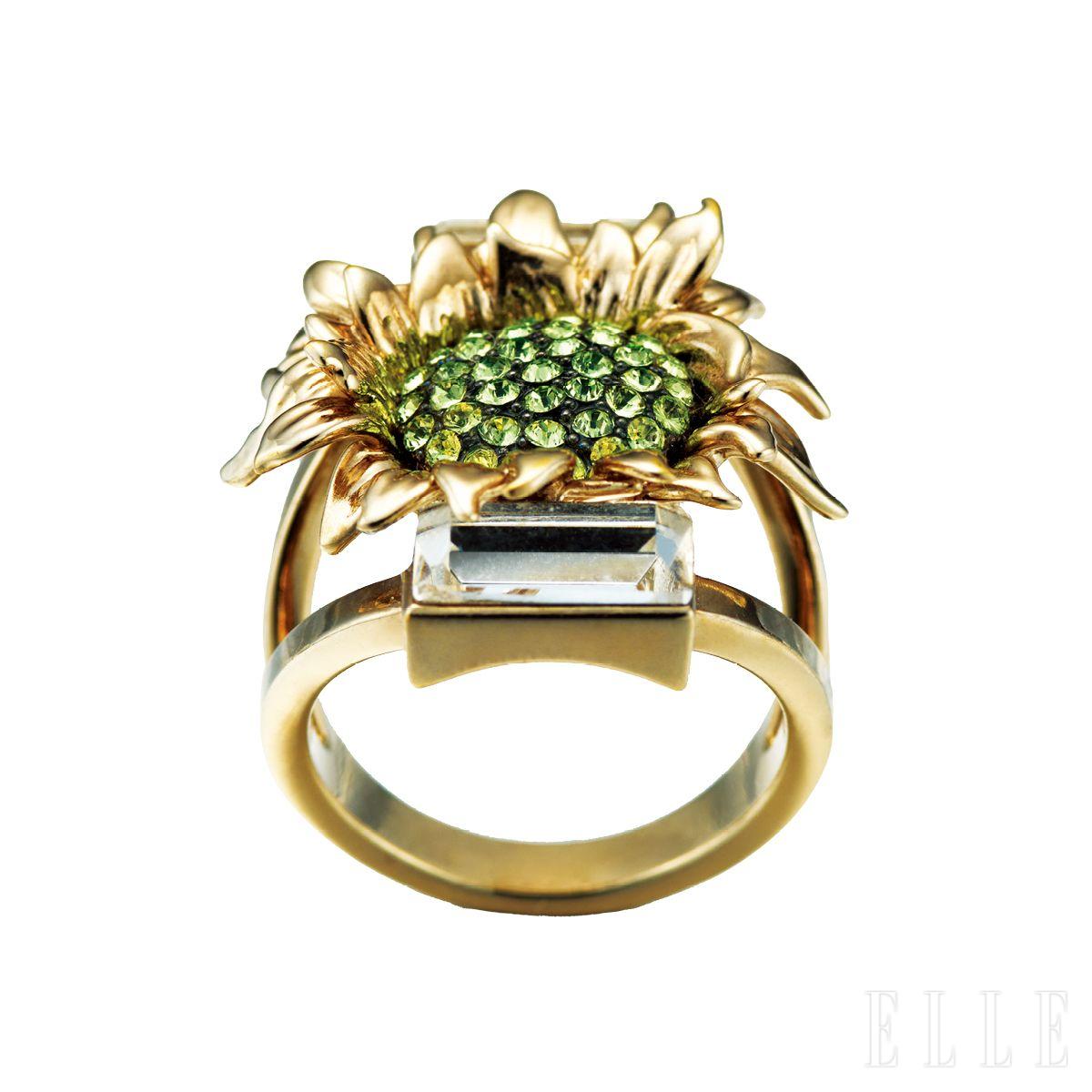 에메랄드 크리스털로 장식한 골드 링은 가격 미정, McQueen.