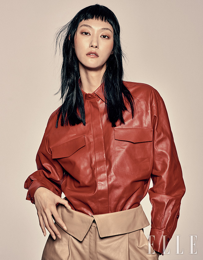 빅 아웃포켓 디테일의 레더 셔츠는 6백만원대, 탠 컬러 레더 팬츠는 5백만원대, 모두 Tod’s.