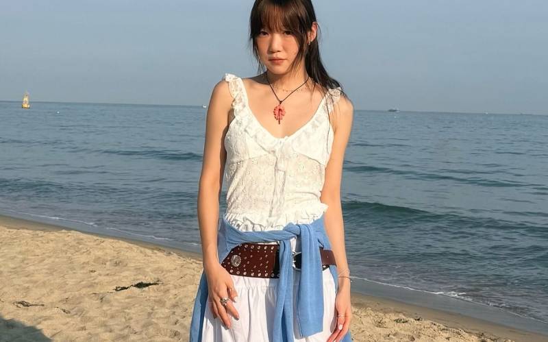 아이들 슈화의 룩은 편안한 무드 속에서 벨트가 어떻게 단숨에 스타일을 완성하는지 보여줍니다. 루즈한 카디건과 롱스커트라는 부드러운 조합에 폭이 두껍고 장식이 묵직한 벨트를 허리 아래로 자연스럽게 내려 연출했죠. 이 느슨한 위치 선정이 포인트. 실루엣이 흐르는 와중에 벨트만은 단단히 시선을 고정해 균형을 만들어요. 와이드 벨트가 허리를 조이지 않아도 충분히 존재감을 발휘한다는 걸 완벽하게 증명한 스타일입니다. 평범한 그레이 톤 룩도 벨트 하나로 감각적인 인상을 얻고 있네요.