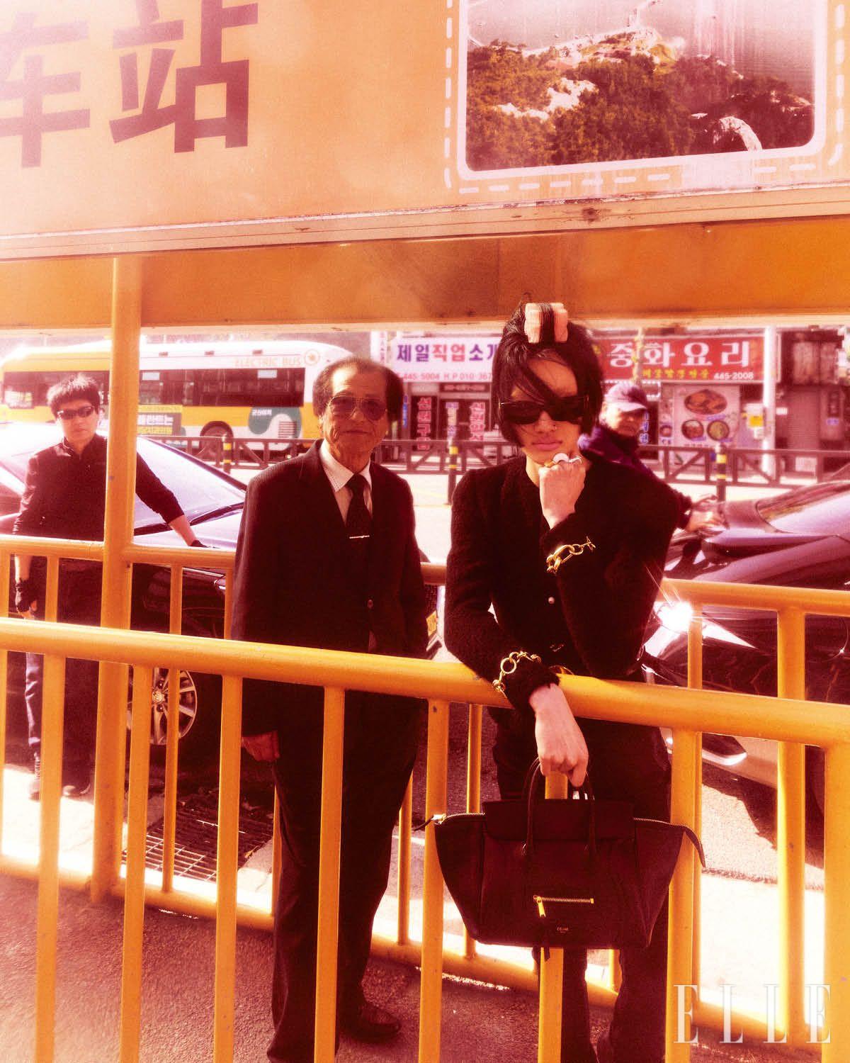 캐시미어와 울 나트 재킷은 8백90만원, 데님 스키니 진은 1백45만원, 스몰 뉴 러기지 백은 4백85만원, 메탈 버클 벨트는 1백50만원, 저니 선글라스는 73만원, 레이스업 부츠는 2백40만원, 왼손 검지에 착용한 설키 링은 84만원, 중지에 착용한 에나멜 링은 81만원, 약지에 착용한 트리옹프 스퀘어 링은 69만원, 골드 청키 브레이슬릿은 1백87만원, 오른손에 착용한 셀린느 헤리티지 청키 브레이슬릿은 1백34만원, 모두 Celine.