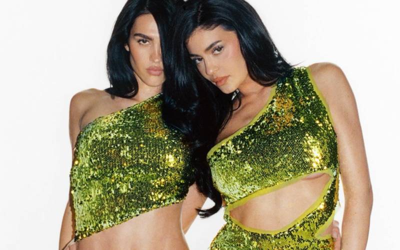 푸시아 실크 러플 드레스는 가격 미정, McQueen. 해마 모티프의 이어링은 가격 미정, Gucci.