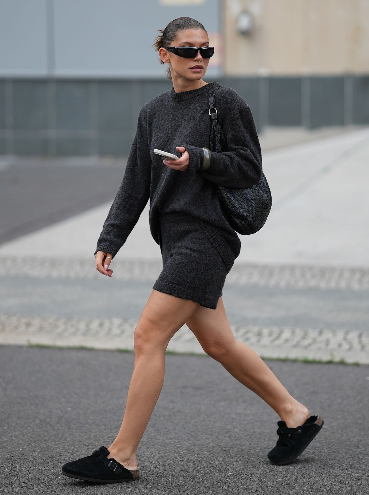 올 블랙은 그 자체만으로도 강렬한 미니멀리즘의 정수를 보여줍니다. 올 블랙이 겨울에 특히 더 빛나는 이유는 다양한 소재가 서로 충돌하지 않고, 오히려 조화롭게 어우러져 한층 더 고급스러운 분위기를 자아내기 때문이죠. 페이크 퍼 재킷은 도시적인 무드와 드레시한 무드를 자유롭게 넘나들며, 번화가와 갤러리 그 어느 곳에서든 자연스러운 존재감을 드러냅니다. 여기에 실키한 맥시 스커트를 더하면 우아한 실루엣이 극대화되죠. 둥근 프레임 선글라스와 구조적인 탑 핸들 백, 골드 이어링까지 더하면 룩 전체가 완성형 미니멀리즘으로 들어서게 됩니다. 버켄스탁도 우아할 수 있다는 사실을 가장 잘 보여주는 조합이죠.