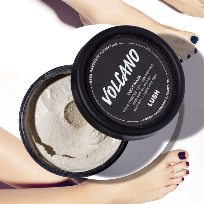두껍게 바른 뒤 랩 또는 비닐로 발을 감싸 사용하는 풋 전용 팩, 볼케이노, 1만8천7백원, Lush.