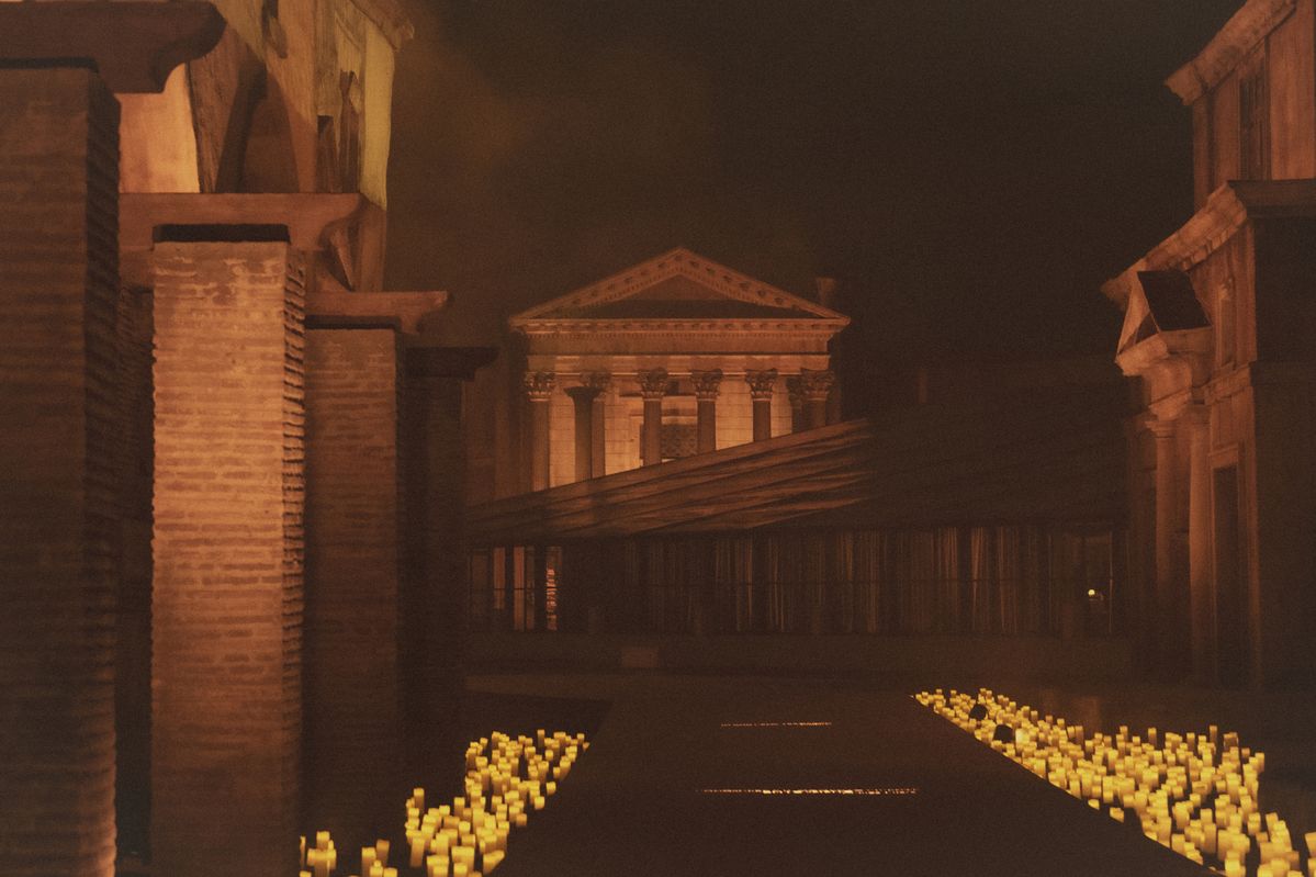 상영이 끝난 뒤 이어진 행사 역시 치네치타가 자랑하는 고대 로마 세트장에서 진행되었습니다. 공화정 시대의 포럼을 정교하게 재현한 이 공간은 마치 시간을 접어 과거로 들어가는 문과도 같았죠. 대리석의 질감과 빛이 만나 만들어낸 공기는 영화보다도 더 영화 같은 분위기를 완성했습니다. 쿠치넬리가 그토록 강조해온 존엄과 절제의 미학이 단순한 관념이 아닌, 물질적인 형태로도 구현될 수 있다는 사실을 절감하게 되는 장면이었죠.