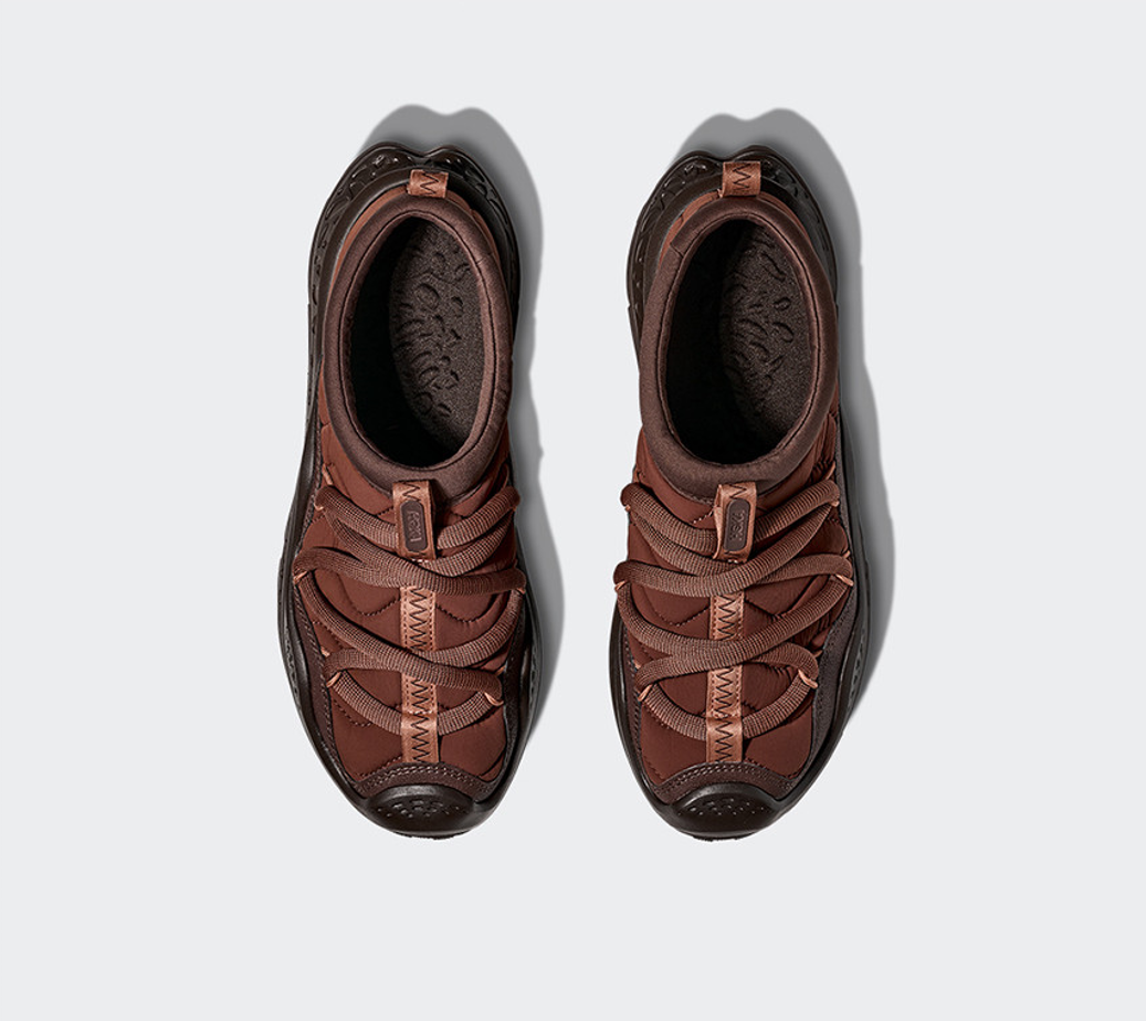 견고한 디자인에 예상치 못한 푹신함. 반전미 넘치는 이 슈즈는 호카의 신제품 오라 프리모입니다. 투박한 아웃솔에 시간이 지나도 변하지 않는 메탈 리벳과 소재를 결합해 오래 신을 수 있는 패딩 슈즈를 선보였어요. 일상에서도 워크웨어 스타일을 고수하는 사람들에게 제격이죠. 따뜻함과 착화감 그리고 견고함까지 갖춘 아이템으로 힙한 데일리 룩을 연출해 봐요. 가격은 16만 5천 원대.