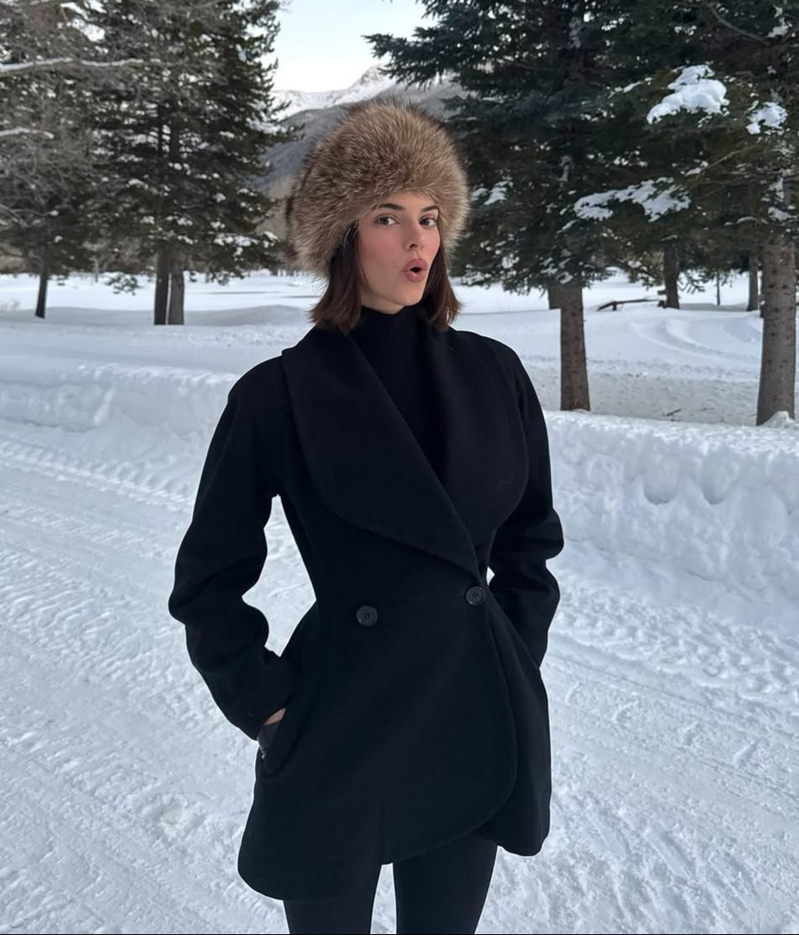글로벌한 영향력을 가진 모델 켄달 제너 역시 터틀넥을 활용해 우아한 겨울 룩을 선보였습니다. 고전적인 아름다움이 느껴지는 아워글래스 실루엣의 클래식한 코트에 이너는 심플한 블랙 터틀넥 니트를 선택해 은은한 고급스러움을 더했죠.