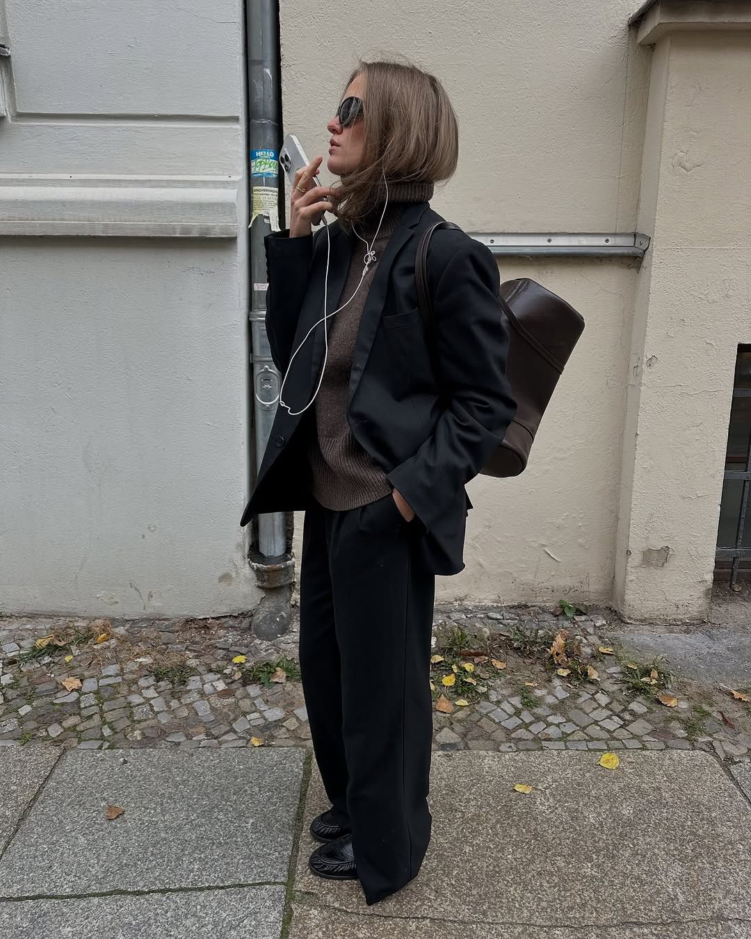 블레이저 역시 대표적인 겨울 아우터 중 하나죠. 터틀넥 니트는 블레이저의 보온성을 보완해 주면서도 특유의 포멀한 매력을 겨울에도 맘껏 즐길 수 있게 해주는 완벽한 궁합을 자랑합니다. 블레이저와 터틀넥 니트 조합은 은근히 매니시한 무드를 살릴 수 있다는 점이 특징이죠. 여기에 고급스러운 가죽이나 스웨이드 소재의 큼직한 가방을 더해주면 완벽한 선택.