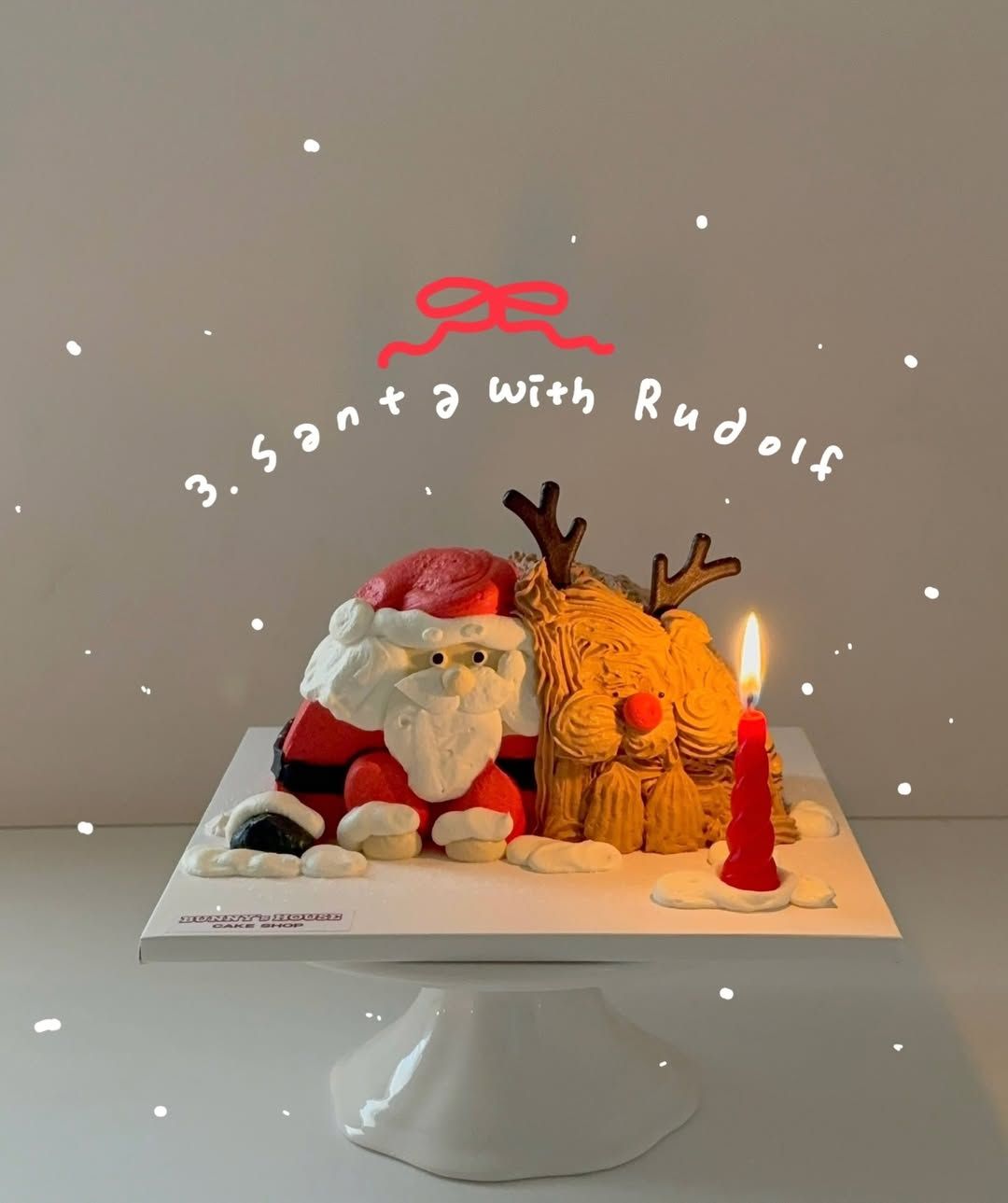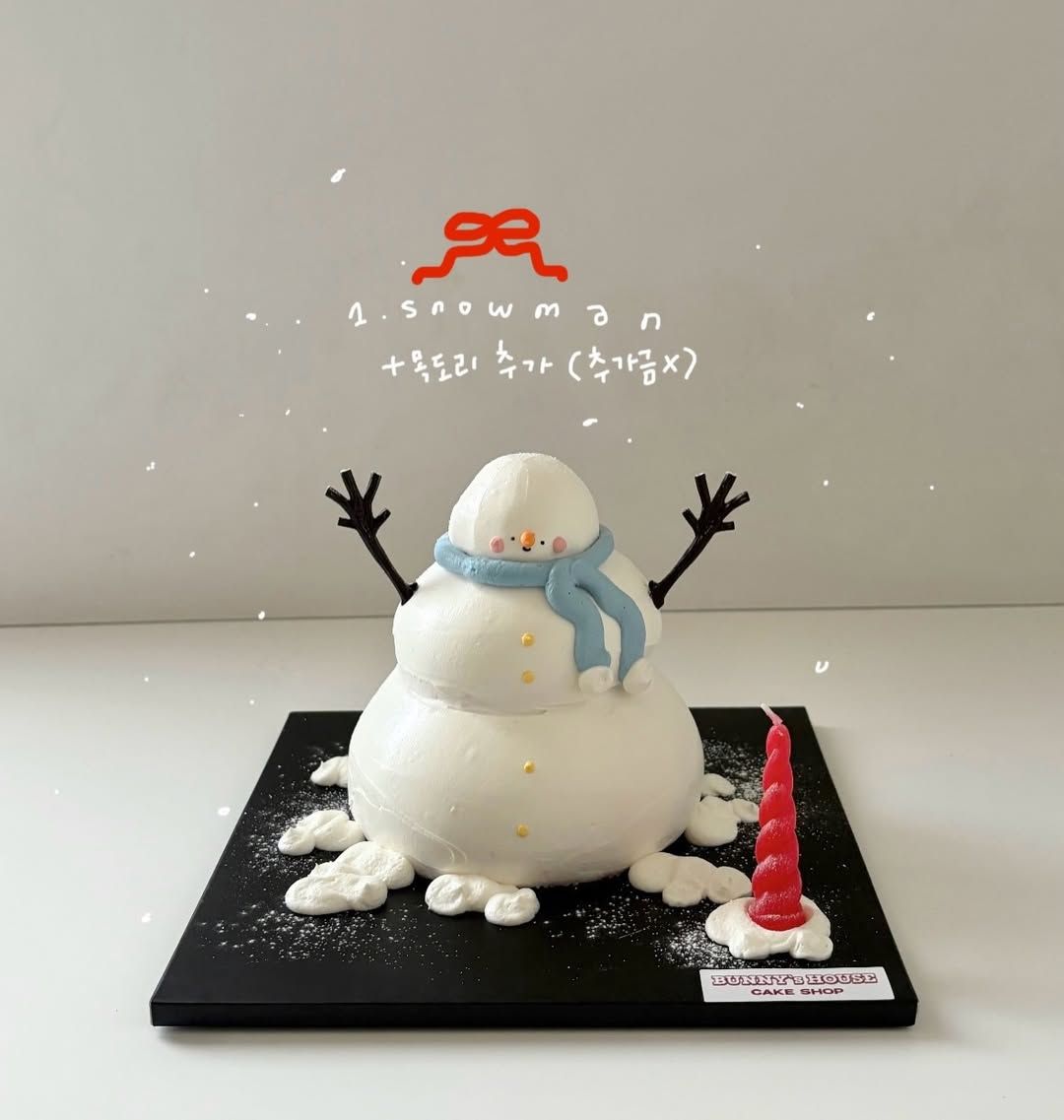 버니하우스 케이크샵은 눈사람과 산타, 산타와 루돌프까지 총 세 가지 디자인으로 선택 폭을 넓혔습니다. 특히 눈사람 케이크는 목도리 추가 옵션도 가능하다고 하네요.