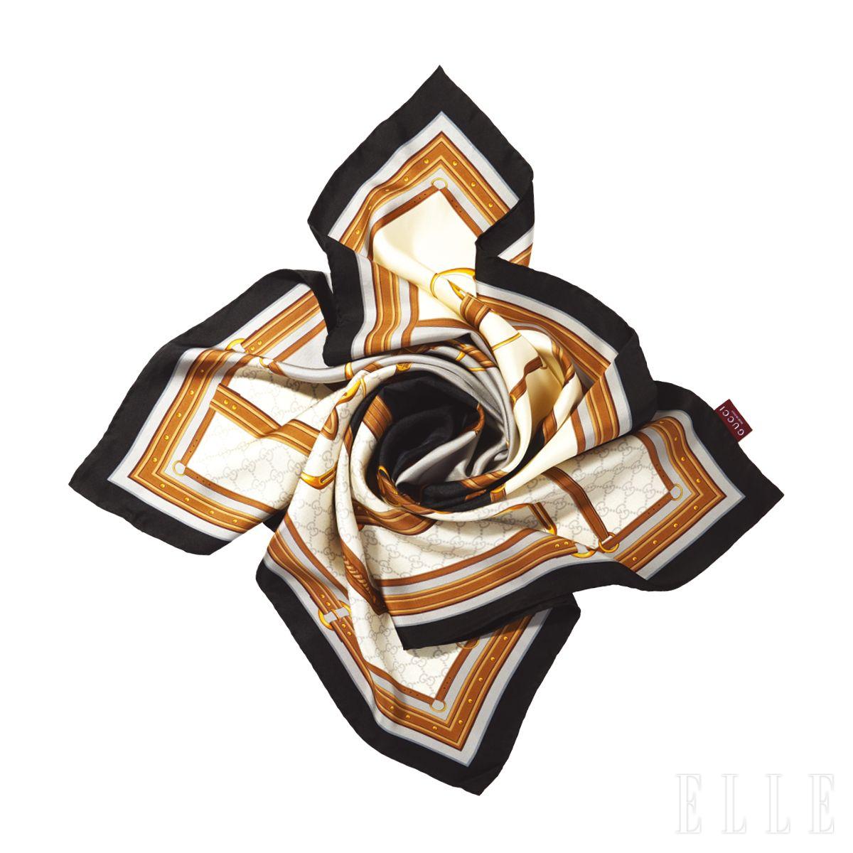홀스빗 프린트의 스카프는 가격 미정, Gucci.