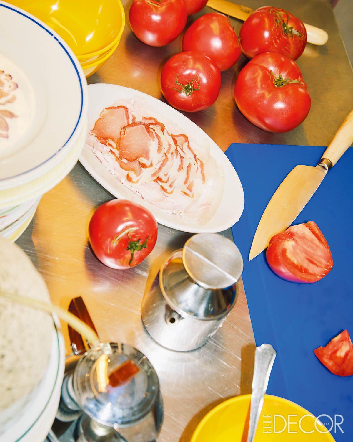 신선한 치즈와 토마토, 햄과 바질, 질 좋은 발사믹 식초와 오일 등으로 독일식 아침 식사를 준비 중이다.