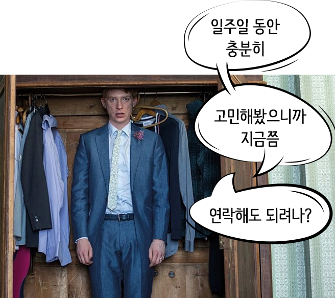 “그녀에게 관심이 있기는 하지만 그녀 역시 저를 마음에 들어하는 건지 확신이 들지 않아요. 하루 정도 있다가 연락하는 게, 그녀도 자신의 마음을 살짝 돌아볼 수 있는 시간을 주는 셈이 되지 않을까요?” -한준(30세, 아나운서)