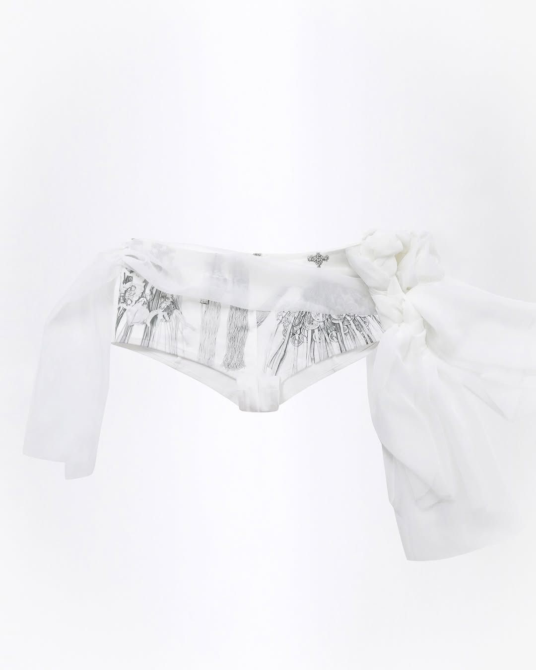 <like JENNIE> 무대에서는 전통과 현대의 조화가 절정을 이뤘습니다. 한국 전통 복식인 동정과 고름에서 영감을 얻은 상의에 서양 복식의 코르셋이 결합됐죠. 덕분에 전체적인 실루엣에 긴장감과 입체감이 더해졌고, 여성의 신체가 지닌 균형과 힘이 또렷하게 드러났습니다. 하의에는 펜화 기법을 활용해 노리개와 은장도 등 한국 공예를 상징하는 이미지가 섬세하게 담겼고, 생사 댕기 매듭을 더해 유려한 볼륨감까지 더했죠.