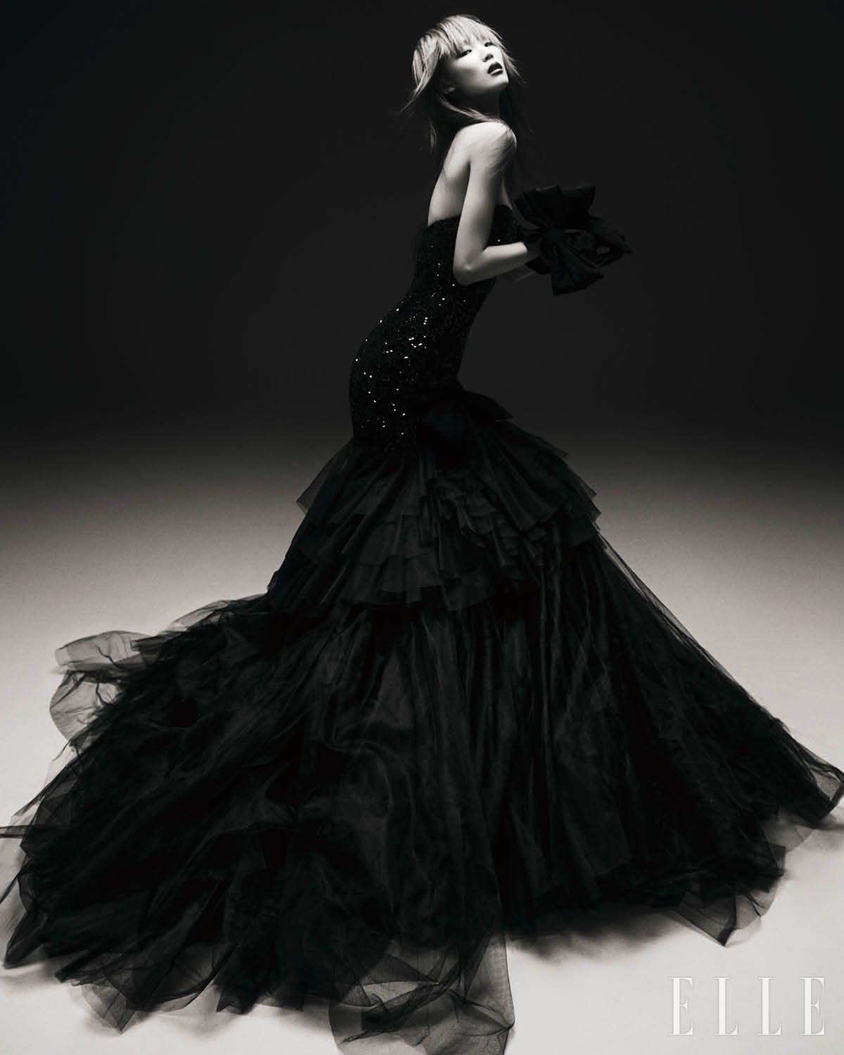 시퀸 샤 드레스는 가격 미정, Gucci. 리본 장갑은 에디터 소장품.
