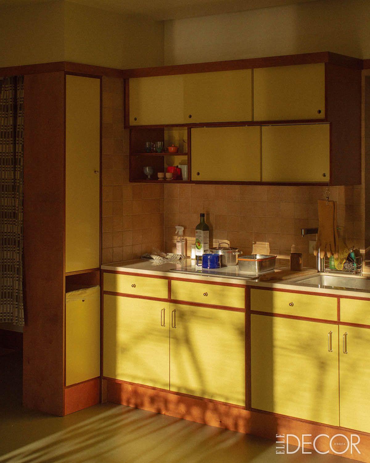 노란색을 중심으로 붙박이 가구를 제작하고, 거실 창가에는 다양하게 활용 가능한 단을 만들었다. 짙은 네이비 벽과 발랄한 옐로 컬러의 수납장이 만드는 대비가 흥미로운 공간은 식스티세컨즈 김한정 실장의 집.