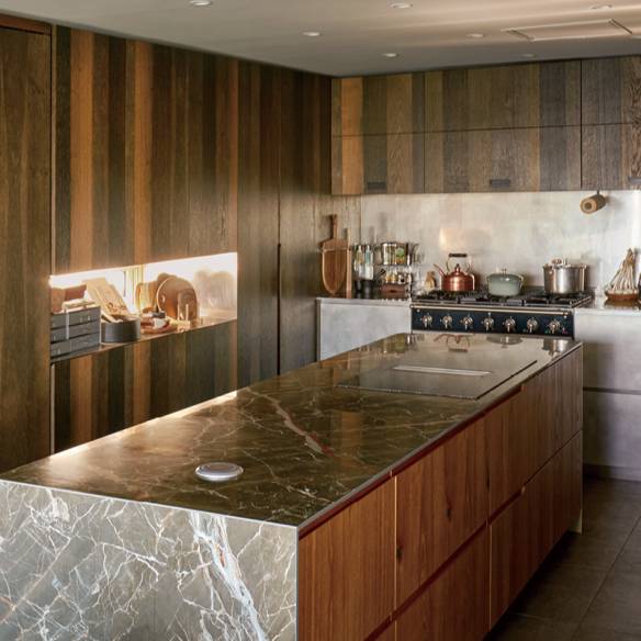 빈 직감적으로 선택하는 편이다. 현장에서 그림을 그리듯 덩어리감과 색과 소재의 조화를 본다. 너무 자잘한 디테일이 많은 디자인은 선호하지 않는다. 다소 과감해 보이는 색과 소재도 포인트로 쓰는데, 클라이언트가 용기를 내볼 수 있도록 북돋기 위함이다. 최종적인 조화와 비율은 내가 정하지만, 결정하는 과정의 대화가 중요하다.