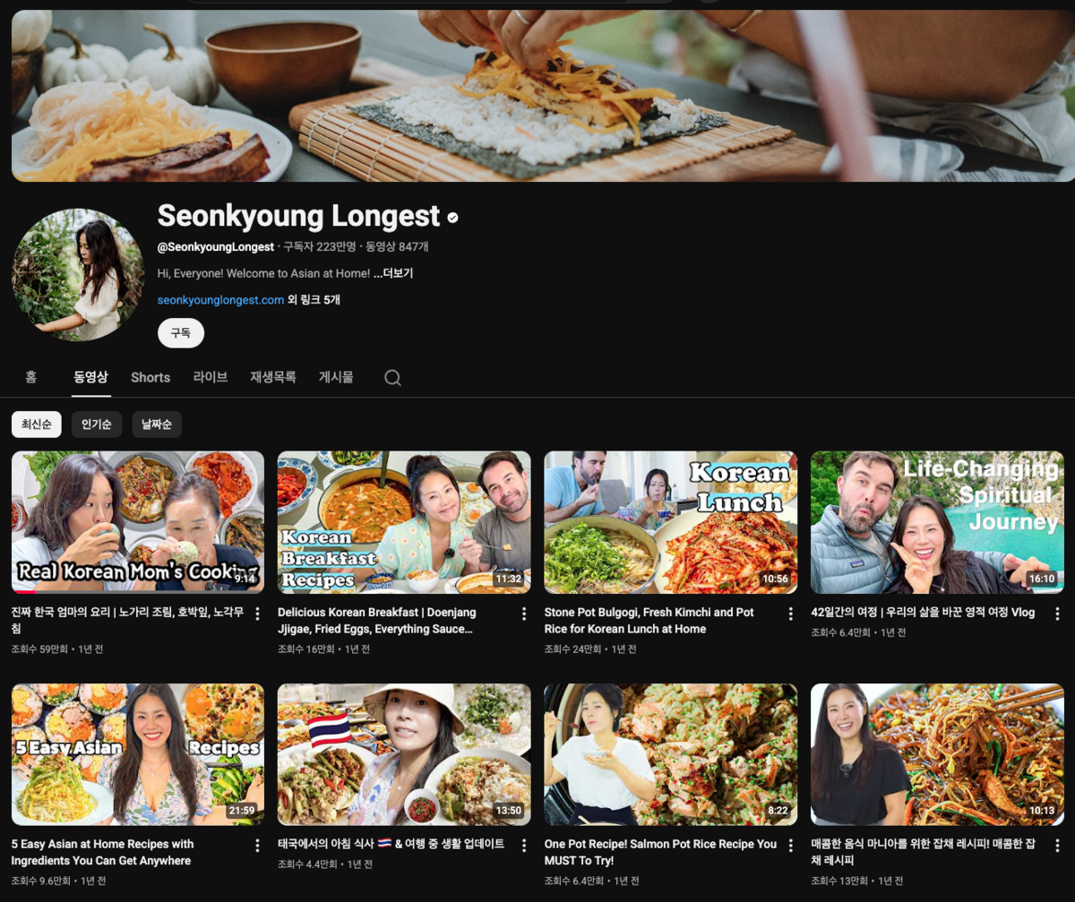 99만 구독자를 가진 안성재 셰프와 13만 구독자 정지선, 60만 구독자 최강록 등 <흑백요리사> 시리즈 출연자 중에는 유튜브에서도 활약 중인 인물이 많은데요. 가장 높은 구독자 수를 보유한 이는 시즌1의 선경 롱게스트입니다. 그는 13년차 1세대 요리 유튜버로, 2009년 미국으로 이민 간 직후 푸드네트워크의 프로그램에 프로그램에 출연하며 정식으로 요리를 배우기 시작했습니다. 현재는 아시아 푸드 쇼이자 웹사이트인 '아시안 앳 홈'에서 제작한 유튜브 콘텐츠를 통해 220만에 달하는 구독자를 보유 중입니다. 다만 그는 <흑백요리사> 출연으로 구독자 일부를 잃기도 했는데요. 시즌1 출연 당시 최강록, 조은주 셰프 둥과 요리의 방향 등을 두고 이견을 드러내던 중 잠시 시청자들에게 미운털이 박힌 적이 있습니다. 악플 세례 탓에 큰 스트레스를 받고 있다고 토로한 적도 있고요. 그렇지만 그의 채널에 방문하면 어머니와 오손도손 이야기를 나누며 술잔을 기울이는 모습, 남편과 함께 산티아고 순례길을 떠나는 광경 등 그의 입체적인 면모가 충분히 드러납니다.