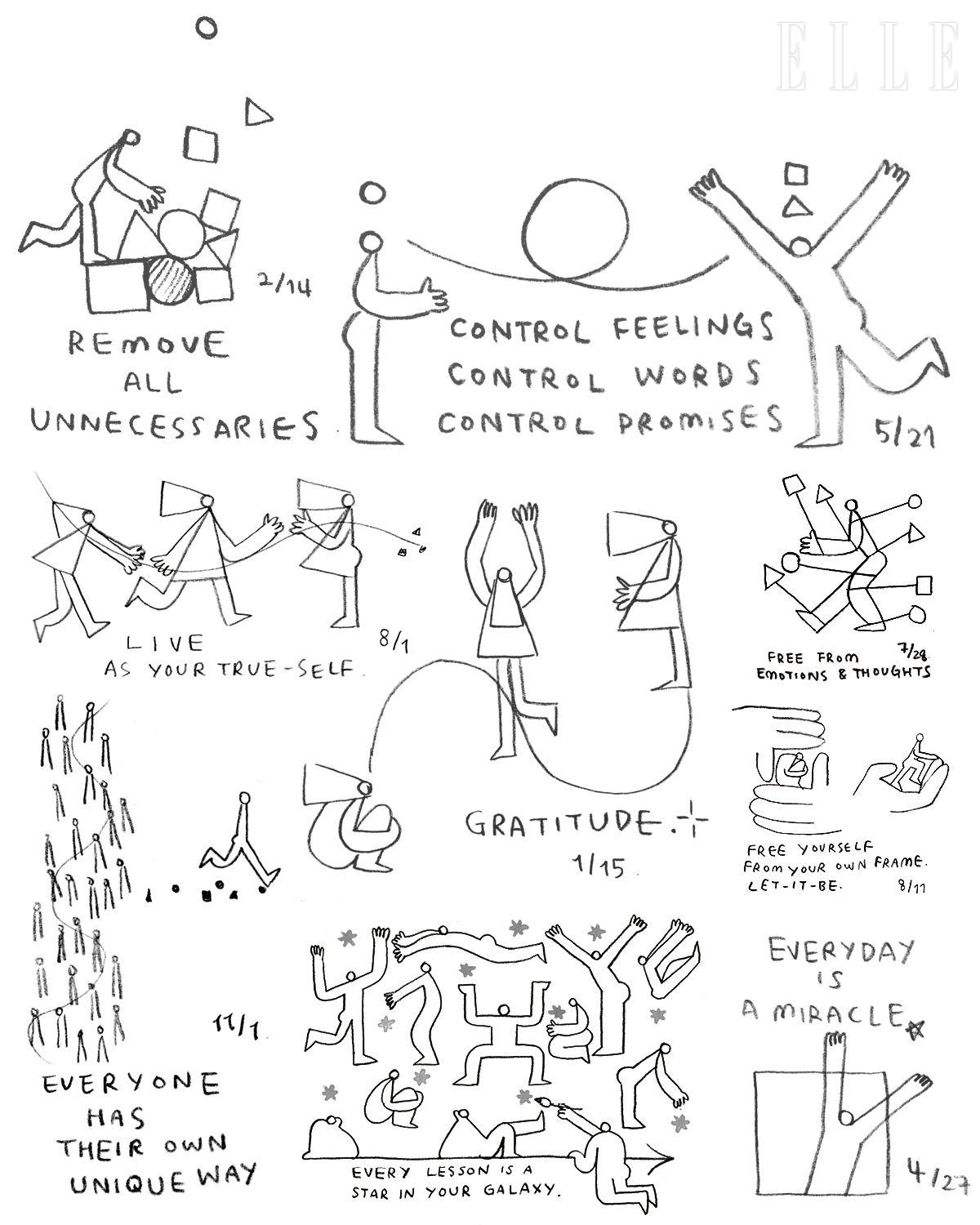 1000여 점의 드로잉 중 절반 정도가 <언폴드>에 담겼다. 책에 실을 드로잉을 고르는 과정은 ‘나를 다시 읽는 경험’이었을 것 같다