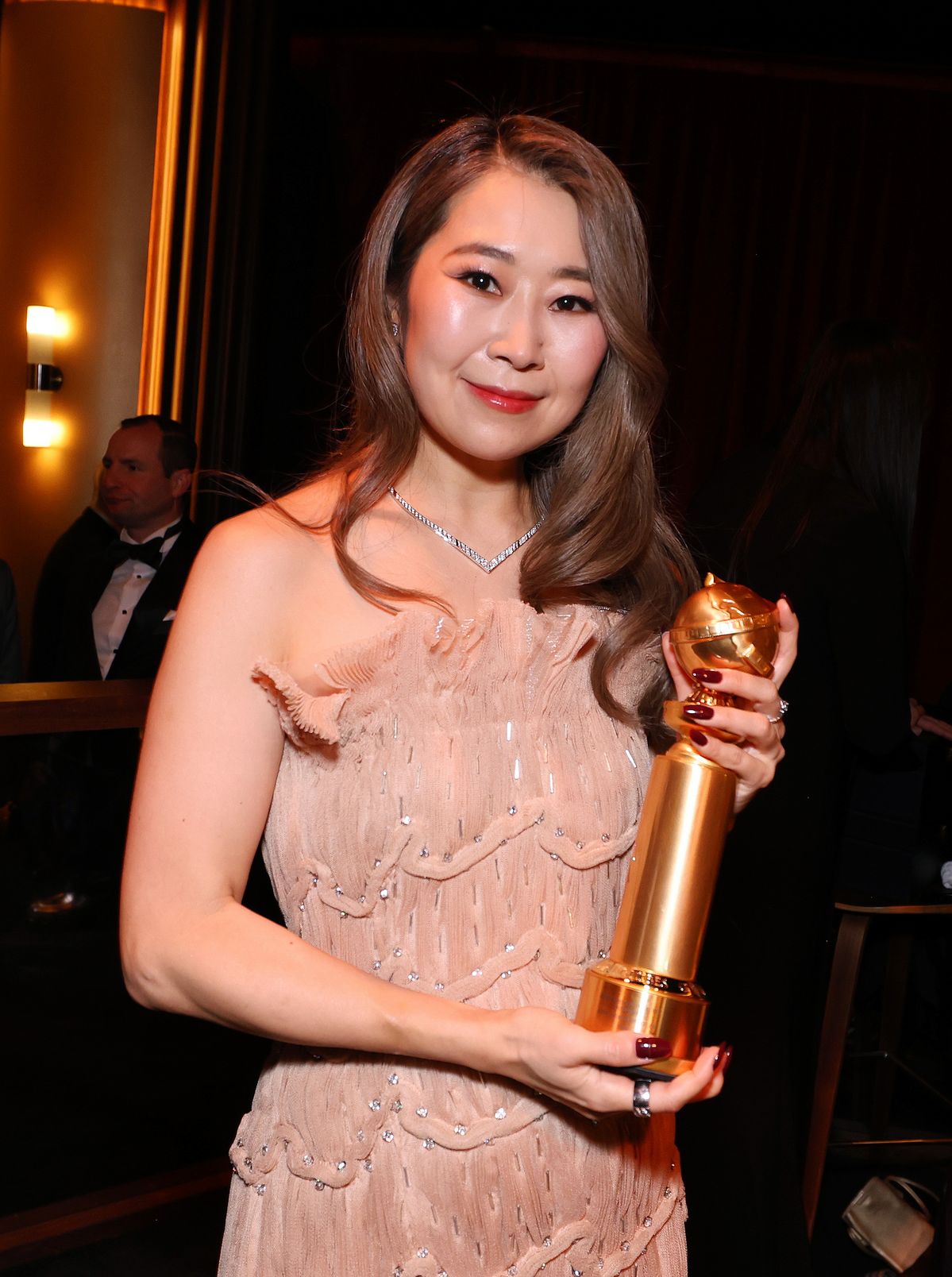 먼저 <케이팝 데몬 헌터스>의 최고 인기 삽입곡인 '골든'은 <아바타: 불과 재>, <씨너스: 죄인들>, <위키드: 포 굿>, <트레인 드림스> 등 할리우드 대작들과 영화 부문 최우수 주제가상(Best Original Song - Motion Picture)을 놓고 경쟁했습니다. 앞선 크리틱스초이스 어워즈에서 이미 주제가상을 받은 터라 이번에도 '골든'의 수상이 점쳐졌는데요. 이변은 없었습니다. '골든'의 가창자이자 작곡가인 이재는 눈물을 흘리며 트로피를 받기 위해 무대에 올랐습니다.