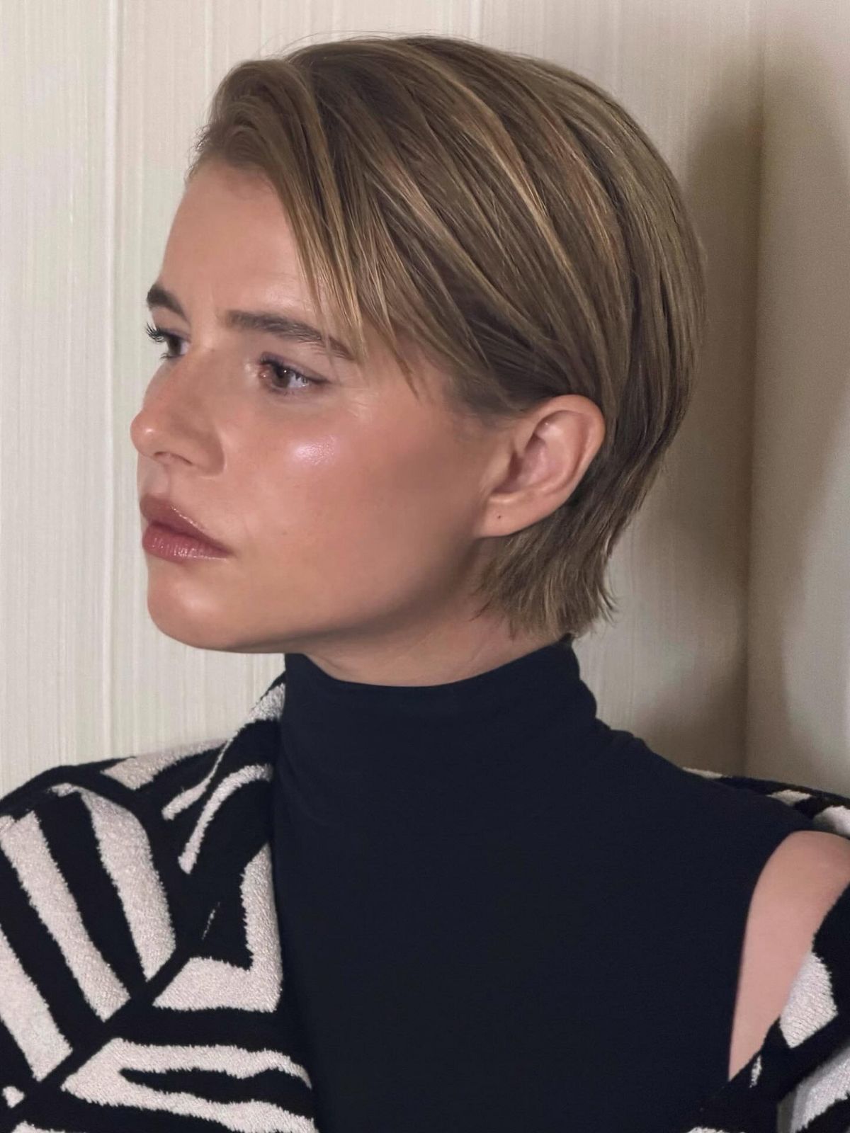 최근 길거리에서 포착된 모습에서도 제시 버클리의 센스 있는 픽시 컷은 여전히 유효합니다. 오버사이즈의 빳빳한 화이트 셔츠와 매치한 그는 앞머리를 얼굴에서 넘겨 고정하고, 모발의 질감을 살린 마무리가 돋보이는 사이드 스웹 픽시 컷을 선보였습니다. 마치 소년미 넘치는 90년대 픽시 크롭 스타일을 연상시키며, 일상에서도 쿨하고 신선한 느낌을 연출하는 룩이었죠. 만약 픽시 컷을 고민 중이라면, 제시 버클리의 스타일에서 아이디어를 얻어보세요.