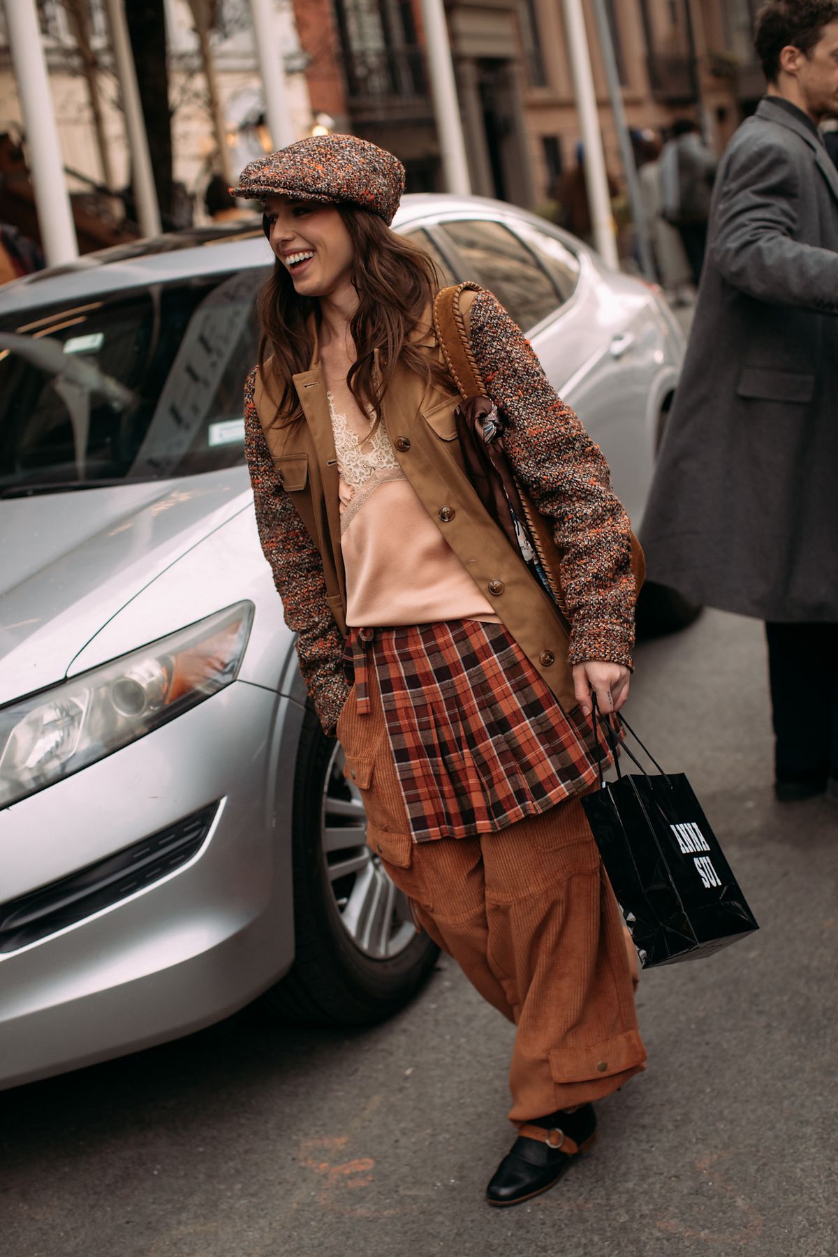 체크 스커트라고 해서 모두 같은 방식으로 접근하면 안 됩니다. 스커트의 기장과 디자인에 따라 어울리는 체크 패턴 역시 달라지니까요. 문가영과 아멜리아 그레이는 경쾌한 길이의 체크 미니스커트를 선택했습니다. 두 사람 모두 강렬한 레드 컬러의 타탄 체크를 활용해, 펑키한 무드를 강조하고 과감한 미니스커트 디자인과 시너지를 만들어냈죠. 체크 존재감이 확실할수록 짧은 기장과 잘 어울리네요.
