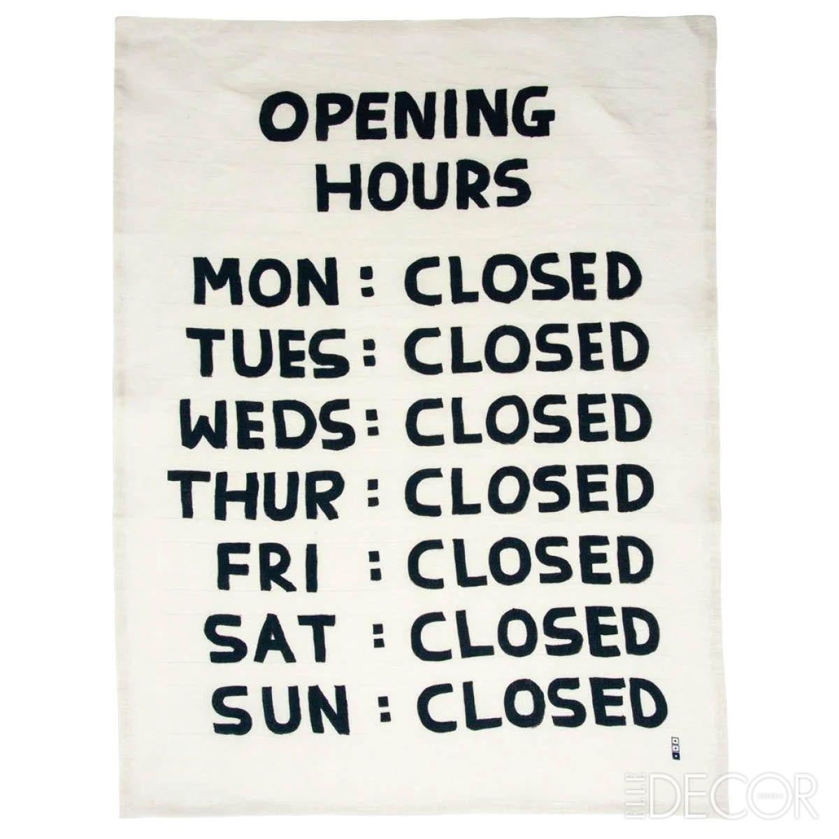 Opening Hours Tea Towel, David Shrigley 슈리글리 특유의 유머가 담긴 리넨 티 타월.