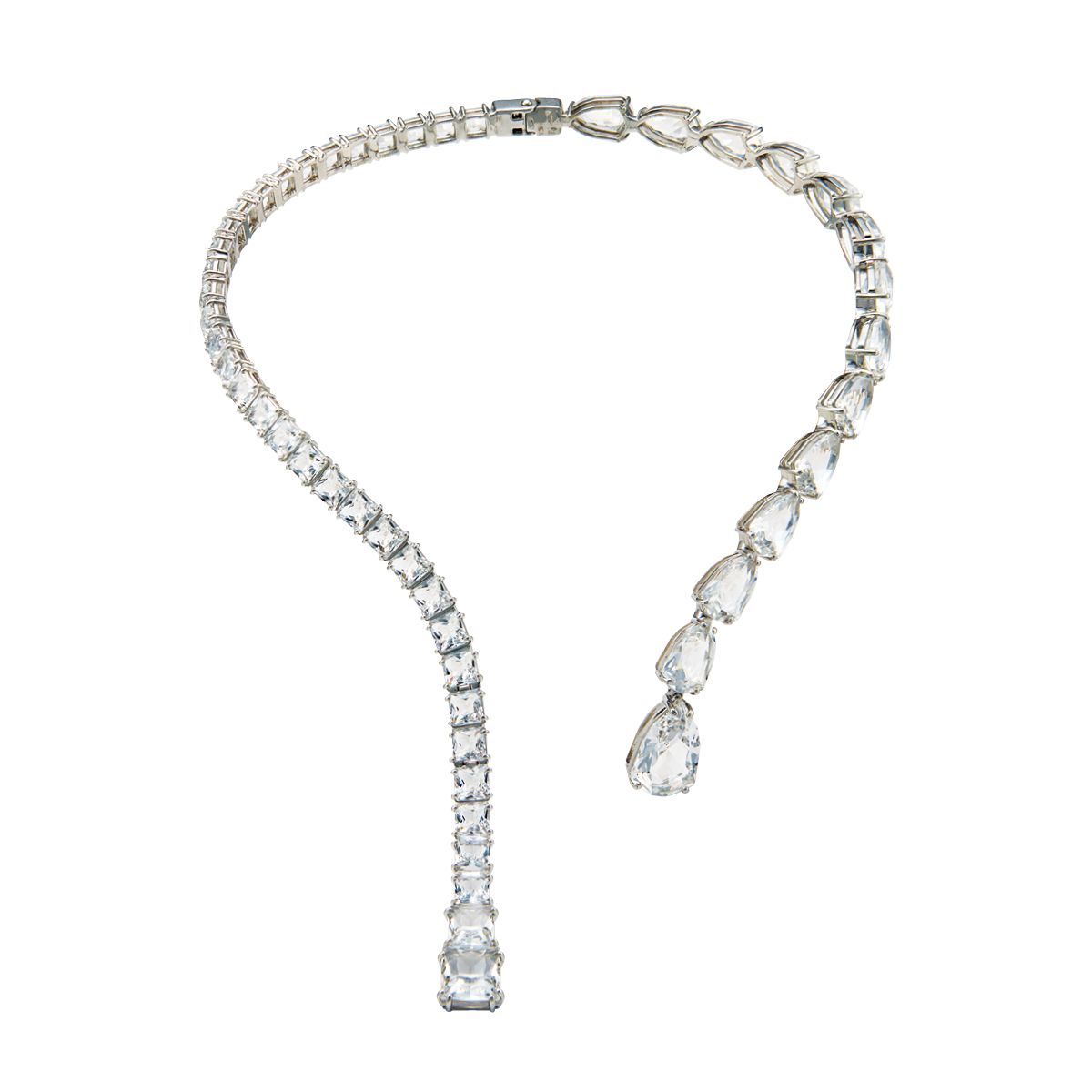 우아하게 목을 감싸는 크리스털 오픈 네크리스는 95만원, Swarovski.