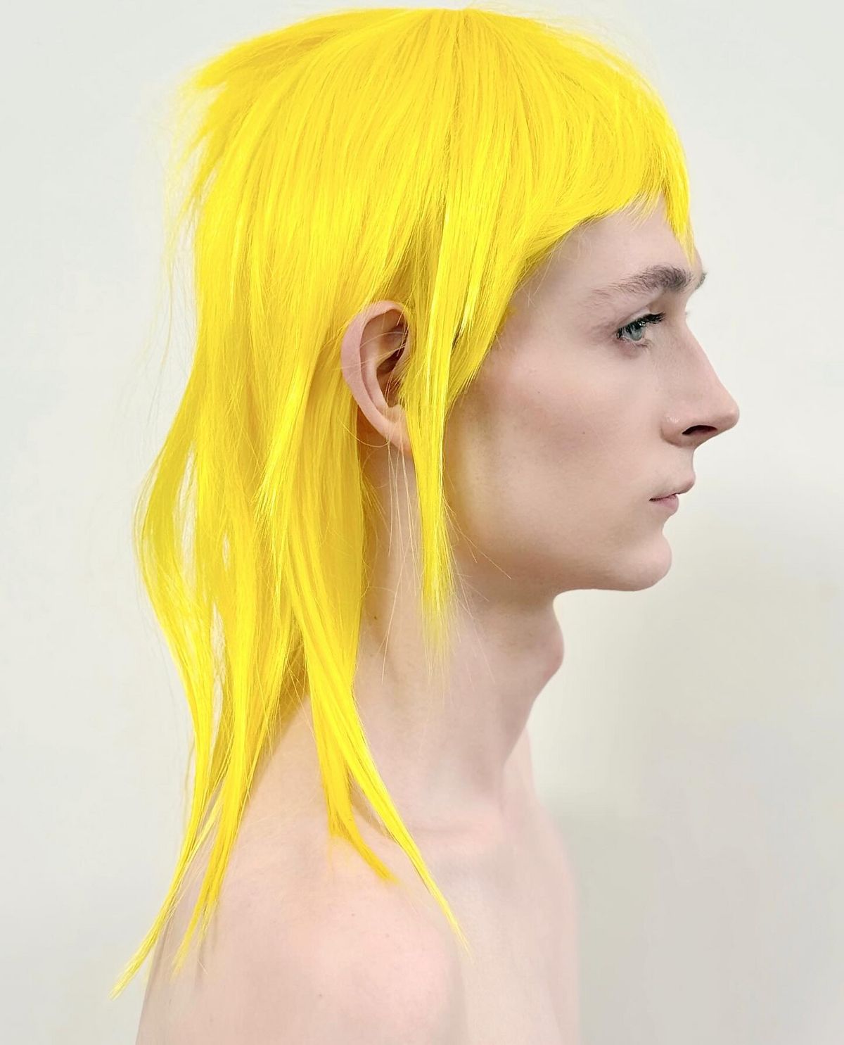 디올은 이 시대의 유일무이한 헤어스타일리스트 귀도 팔라우의 손길을 거쳐 인위적인 네온 옐로 컬러, 과장된 볼륨과 거친 텍스처의 파격적인 헤어스타일의 모델들을 앞세웠습니다. 이번 컬렉션을 폴 푸아레의 자유분방함에서 영감을 받았다는 조나단 앤더슨의 말과도 일맥상통하는 모습이었습니다.