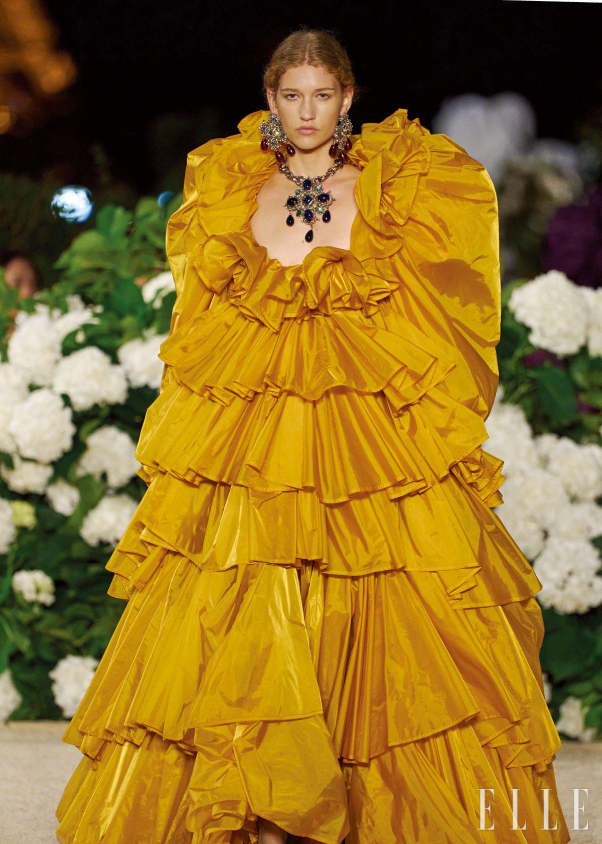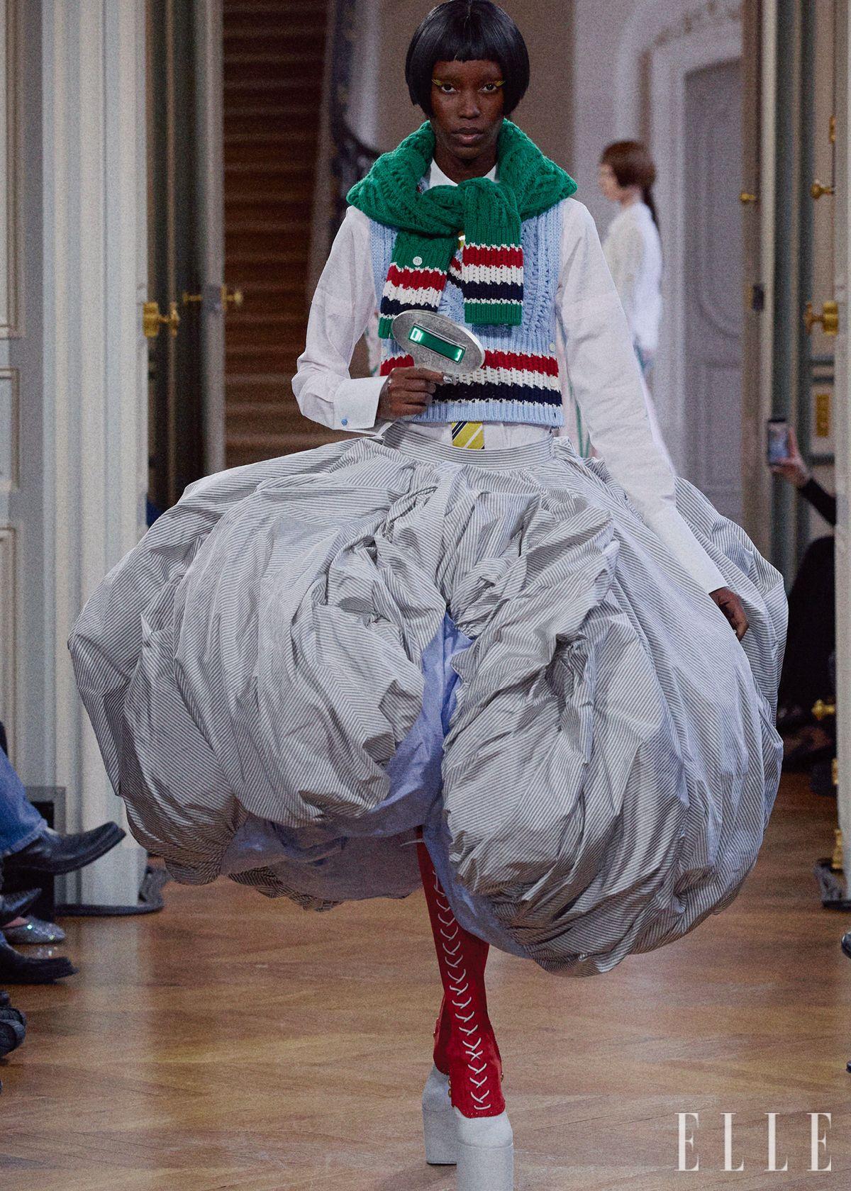 호다코바는 우산 살을 활용해 입체적인 실루엣을 고안한 드레스와 스커트 자락에 덧붙였다. 그 밖에 커다란 풍선 두 개가 들어간 듯한 실루엣으로 볼륨감 있게 완성한 디올의 드레이핑 드레스, 아웃도어 코드를 접목한 세실리에 반센의 튀튀 스커트까지. 디자이너의 볼륨 플레이가 새 시즌을 자극했다.