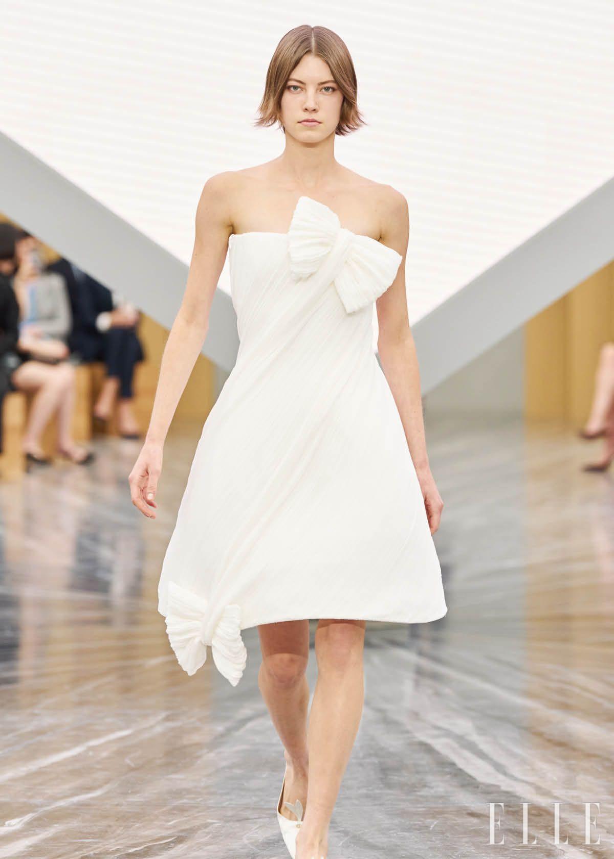 조나단 앤더슨은 디올의 아카이브를 재현하는 대신, 해체하고 재조합하는 방식을 택했다. 전통에 대한 존중 위에 자신의 DNA를 녹여낸 것이다. 디올의 비 재킷과 플레어스커트 등의 클래식 실루엣은 새로운 비율과 구조로 다시 태어났고, 조나단 앤더슨 특유의 과장된 형태와 구조적 실루엣이 무대를 장악했다. 여기에 더해진 리본 디테일은 예상치 못한 사랑스러움으로 긴장을 완화했다.