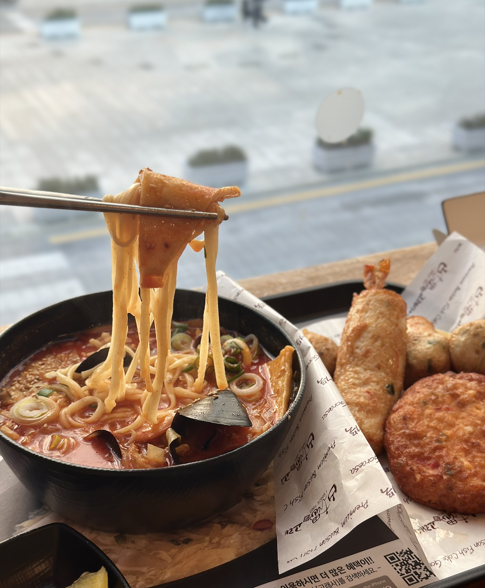고래사어묵 또한 60년이 넘는 역사를 자랑하며 높은 품질을 자랑하는 부산 대표 어묵입니다. 이들이 가장 집중한 것은 ‘건강’이었어요. 어묵의 탱글한 식감과 보존을 위해서는 밀가루를 비롯해 합성보존료와 팽창제 등이 필수로 들어가는데, 이들은 그걸 넣지 않도로 퀄리티 높은 어묵을 만들기 위해 노력했죠. 실제로 먹어보니 확실히 밀가루 맛이 전혀 느껴지지 않는 부드러운 맛이 강했는데요. 50가지가 넘는 어묵 종류 수와 ‘수제 프리미엄 어묵’이라고 자부하는 문구들이 얼마나 어묵에 진심인지 느끼게 해주네요. 이곳은 어묵 뿐 아니라 그 안에 들어가는 부재료의 원물에도 주목했습니다. 그래서 통문어다리, 게다리, 통새우 등 해산물들이 신선한 맛과 형태로 잘 어우러지도록 노력했죠. 이곳의 가장 특별한 메뉴는 우동과 짬뽕입니다. 곁들임 메뉴로 적절하지만, 특별해 보이지는 않는다고요? 이곳의 면 요리는 전부 어묵으로 만든 면이라는 사실! 국물 맛은 말할 것도 없고, 어묵으로 만들었음에도 면발이 탱탱하며 무엇보다 밀가루가 들어가지 않아서 속이 편한 느낌이었어요. 식사를 마친 후 바로 앞 해운대에서 바닷가 산책까지 즐기면, 완벽한 부산 여행이 완성되겠는데요.
