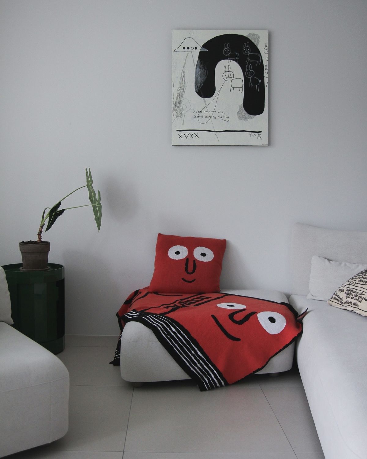 처음 이 집을 인테리어할 때는 어떤 스타일의 가구도 자연스럽게 스며들 수 있도록 보편적인 하얀 스케치북 같은 공간을 만들고 싶었어요. 어떤 그림을 그리듯, 이 집에 사는 사람이 완성해 나갈 수 있게요. 그래서 큰 공간에는 의도적인 포인트를 두지 않았고, 지내면서 조금씩 패턴과 컬러를 더해왔습니다.