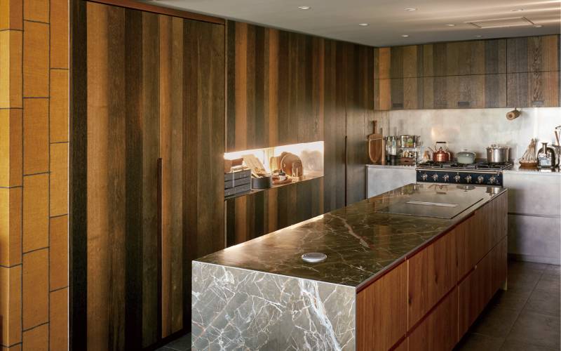 자매의 집에서 가장 눈길이 닿는 곳은 마모륨이 깔린 바닥이다. 목재 분말과 라임스톤, 천연 안료 등으로 만든 친환경 바닥재로, 실내용이지만 주거공간에 사용된 경우는 보기 드문데 자매는 연한 녹색의 마모륨을 전체 바닥재로 사용한 것. 부엌에는 진한 옐로, 세컨드 키친에는 바이올렛이 감도는 파스텔 블루 컬러를 선택했다. “공사가 끝나기 전까지는 과연 색들이 얼마나 조화로울지 걱정됐어요. 결과물이 만족스러워서 다행이었죠.”